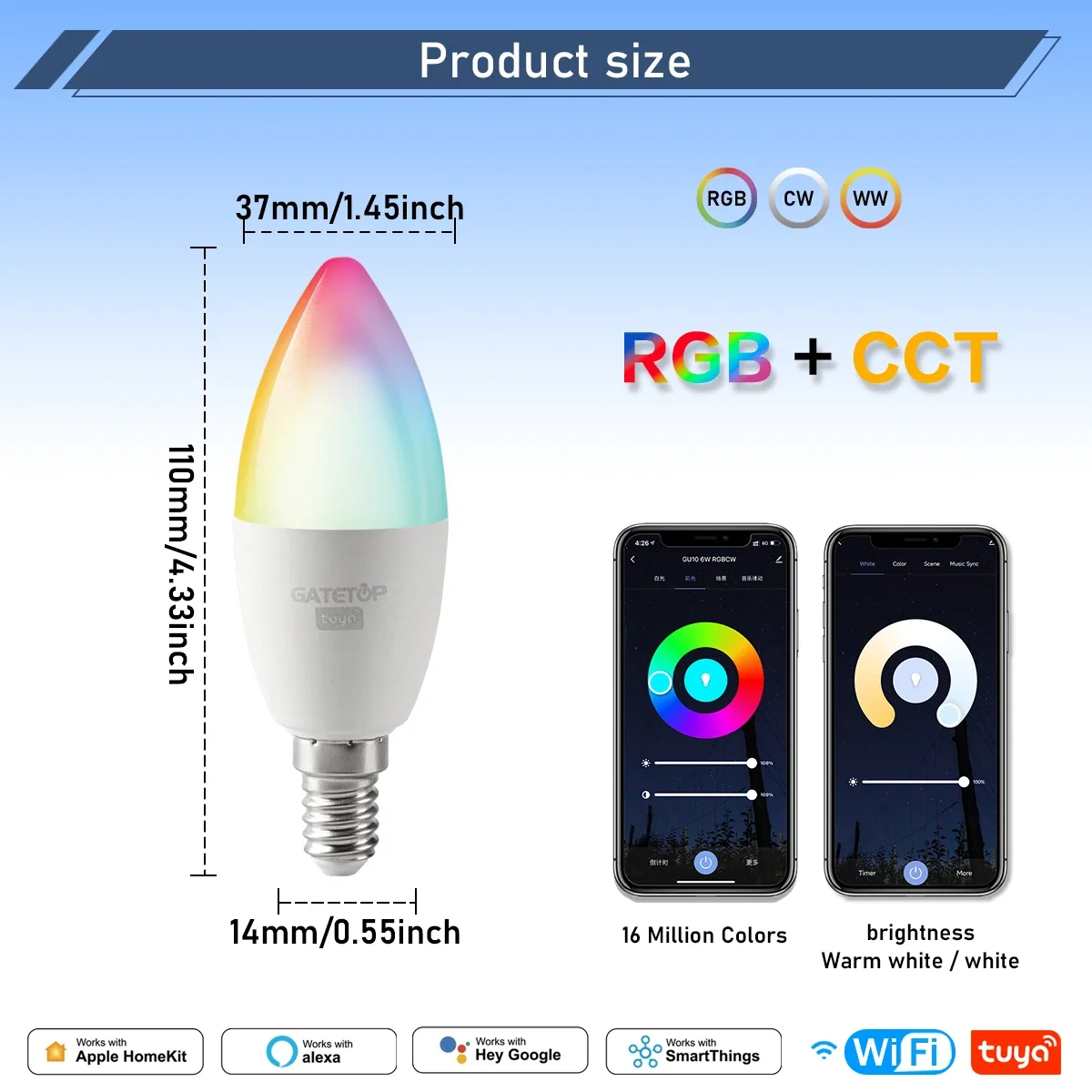 1-10 pièces Tuya Bluetooth WiFi E14 ampoule intelligente RGBCW 85-265V 6W lampe à LED C37 ampoules App commande vocale prise en charge Alexa Google Home1-10 pièces Tuya Bluetooth WiFi E14 ampoule intelligente RGBCW 85-265V 6W lampe à LED C37 ampoules App commande vocale prise en charge Alexa Google Home