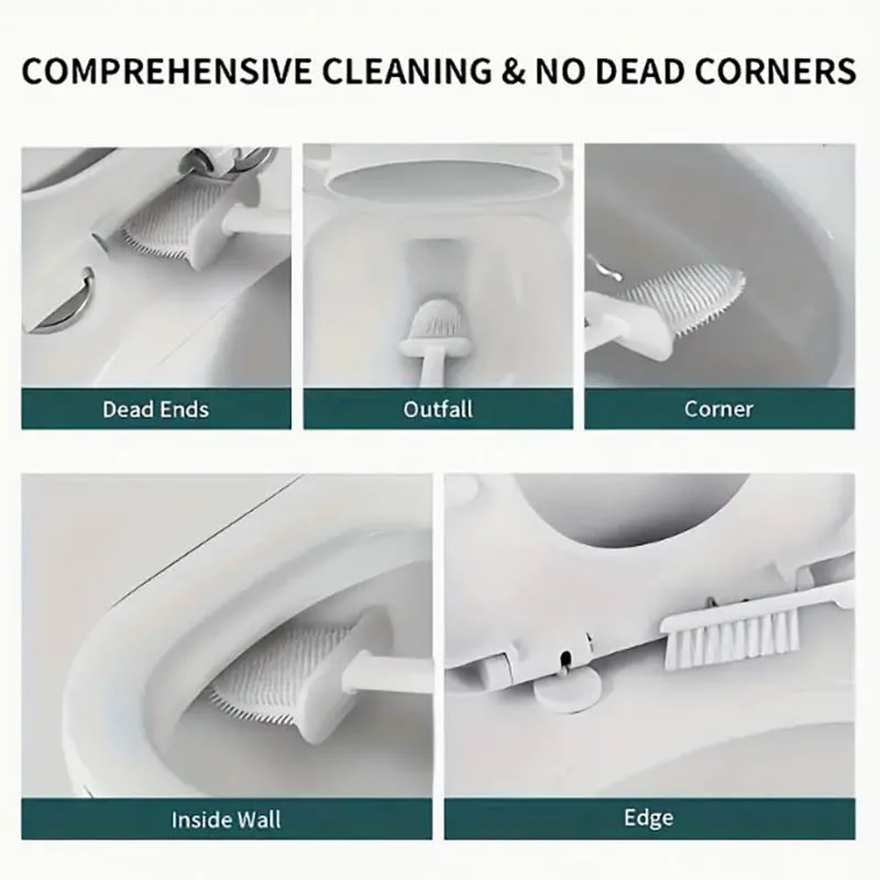 Ensemble de brosses de toilette : brosses de toilette en ABS + tête de brosse en silicone de haute qualité, le revêtement antiadhésif, aucune saleté ne peut s’attacher aux poils et assure ainsi une zone sans germes.