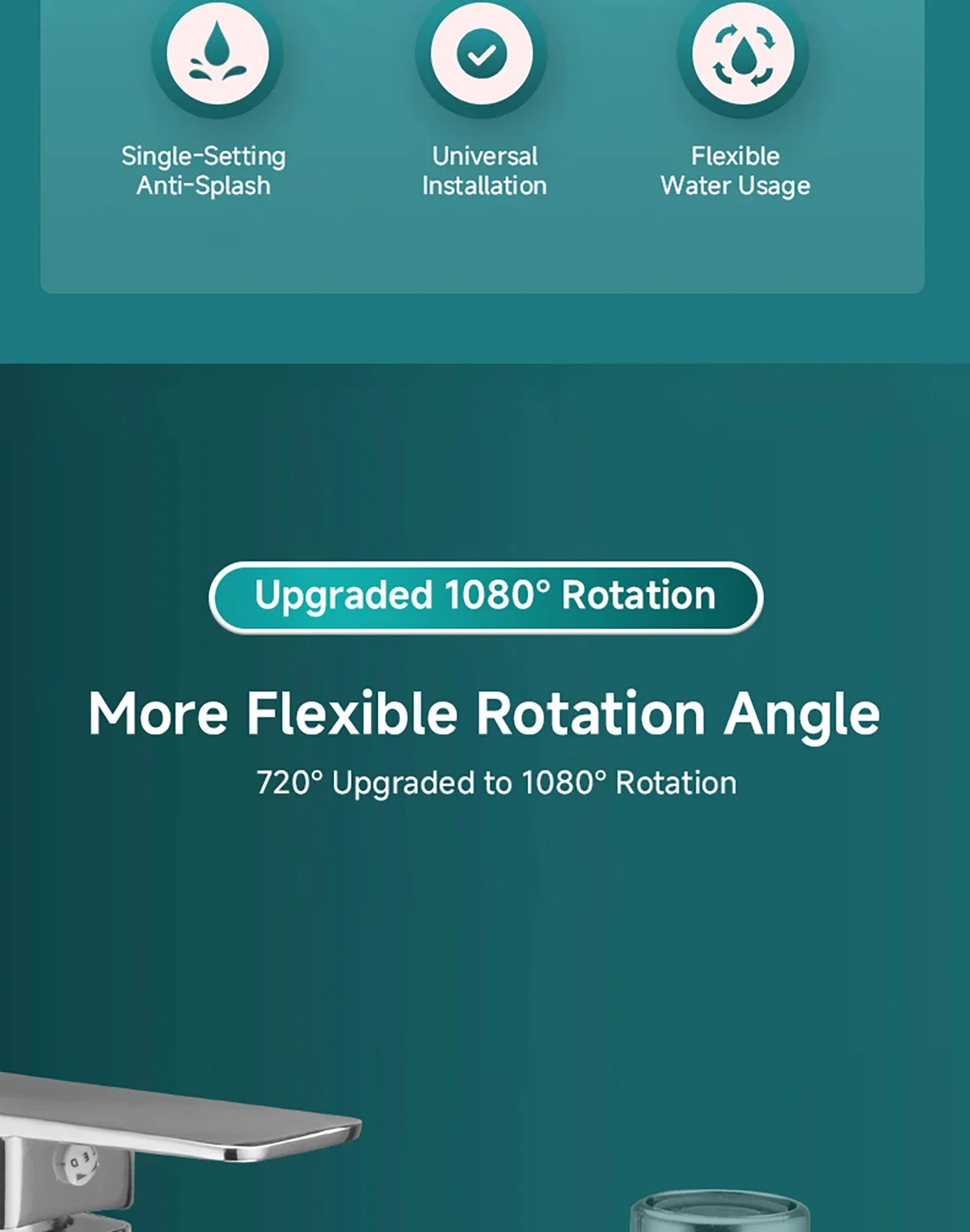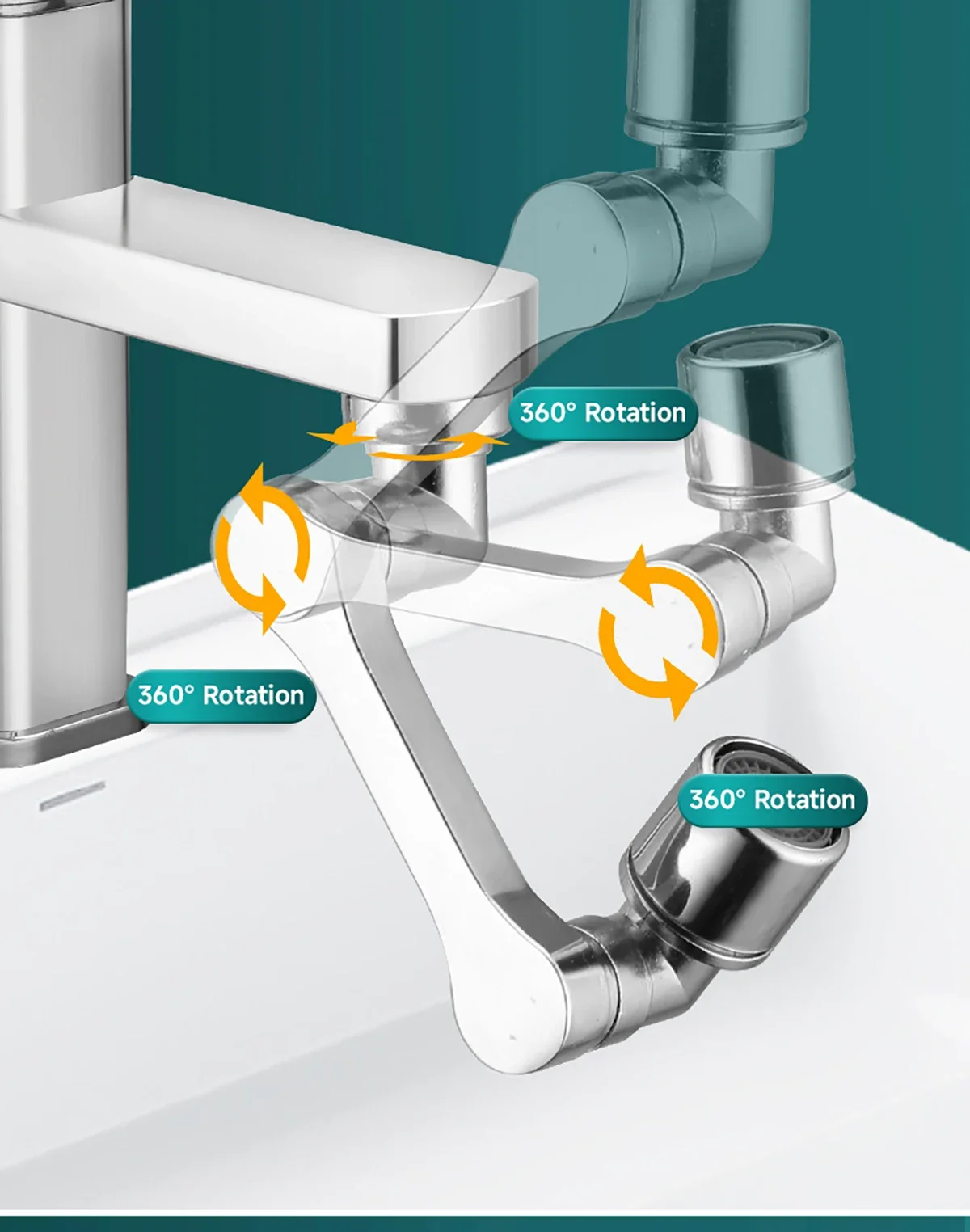 Installation universelle, adaptée au robinet pivotant multi-angle.