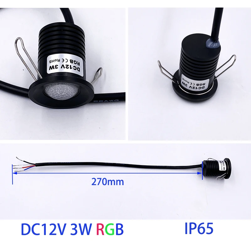 12V RGB IP65 3W Mini LED Downlight avec transformateur plafond projecteur chambre cuisine 12V Dimmable escalier placard fête lumière
