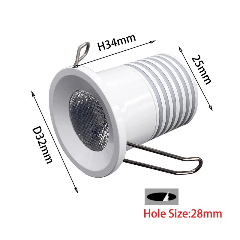Dimensions : D32 x H34 mm, trou de coupe D28 mm
