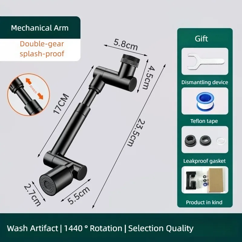 - 1440° faucet extender: Universal Robot Arm Faucet