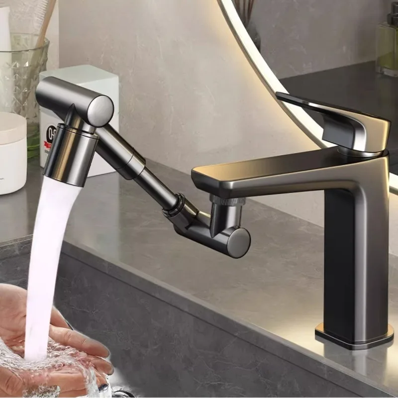 - Robot Arm Universal Faucet: 1440 degree rotating faucet
