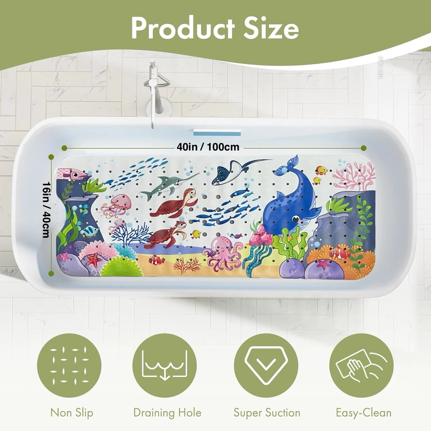 * Design de dessin animé et grande taille : les motifs de dessins animés sur le tapis de bain pour baignoire antidérapant permettront à vos enfants de profiter de l’heure du bain et la taille est de 40 pouces X 16 pouces, il s’adaptera correctement à la baignoire