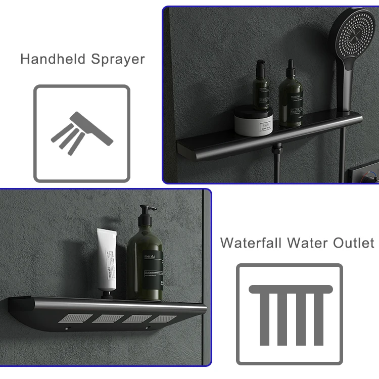 2025 Tik Tok musique pomme de douche salle de bain LED ensemble de douche de pluie thermostatique cascade système de douche de pluie ensemble pour salle de bain