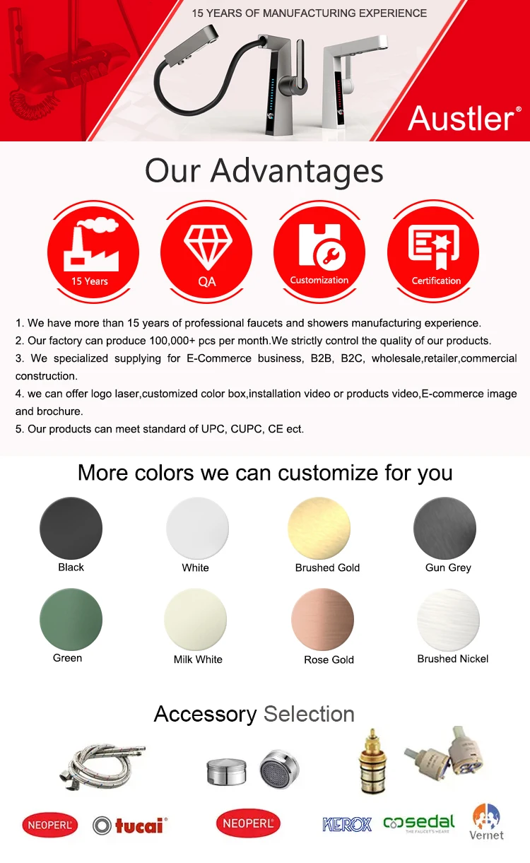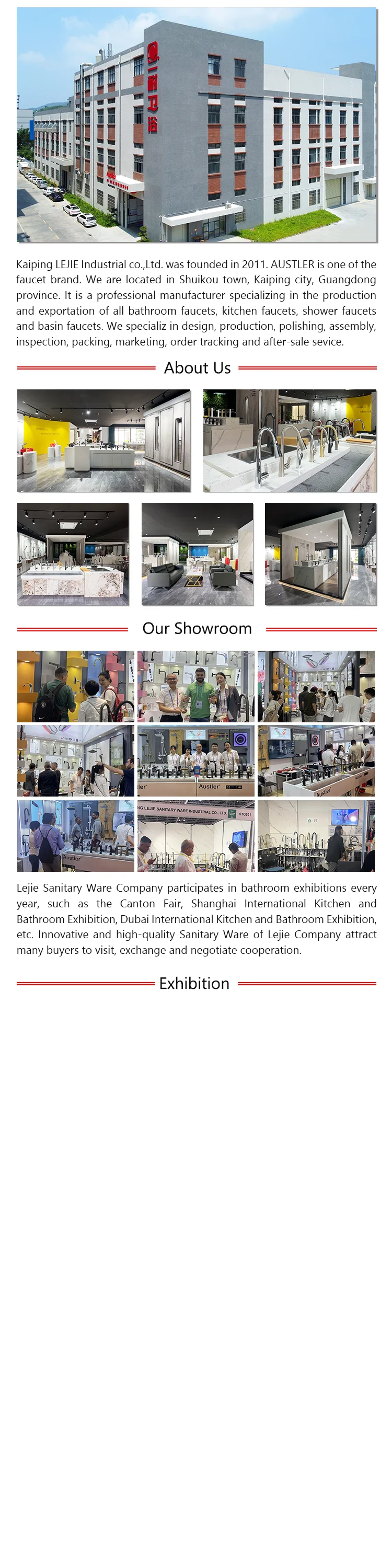 Lejie est un fabricant professionnel de matériel de salle de bain qui fournit des technologies thermostatiques, des technologies d’affichage numérique LED, des systèmes de douche, des robinets de salle de bains, des robinets de cuisine extractibles et des accessoires de salle de bain ainsi de suite.Il vous fournit avec les solutions uniques, de bonne qualité et intelligentes innovantes.Il fait > 800 certifications de produits internationaux, tels que la certification du marché nord-américain CUPC, brevet de conception américaine, santé non toxique NSF/ANSI 61, ACS du marché français, marché européen CE, EN817, EUTM, certification des spécifications techniques thermostatiques EN1111.Lejie ouvrir le marché avec vous main dans la main.