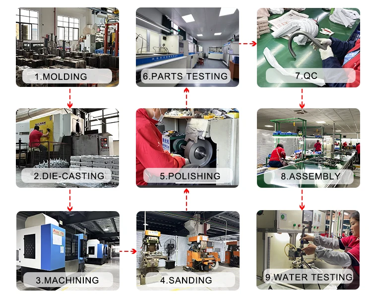 La base de production Lejie consiste en départements complets comprenant un centre de polissage automatique, un centre de moulage par gravité, un centre de machine intelligent CNC, une pression d’air et un centre de test de pression d’eau, un centre de laboratoire et ainsi de suite.