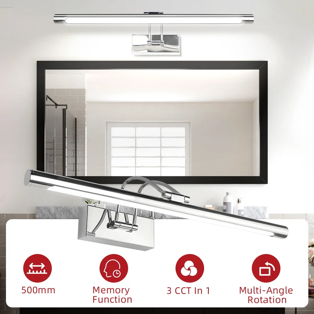 Longue bande miroir phare mural bras oscillant incurvé décoration intérieure salle de bain luminaire miroir salle de bain dressing applique murale trois couleurs gradation avec interrupteur mémoire 15W adapté pour miroir salle de bain chambre couloir salle d’exposition/salle à manger/bar/chambre à manger/chambre à manger/chambre à manger/lot