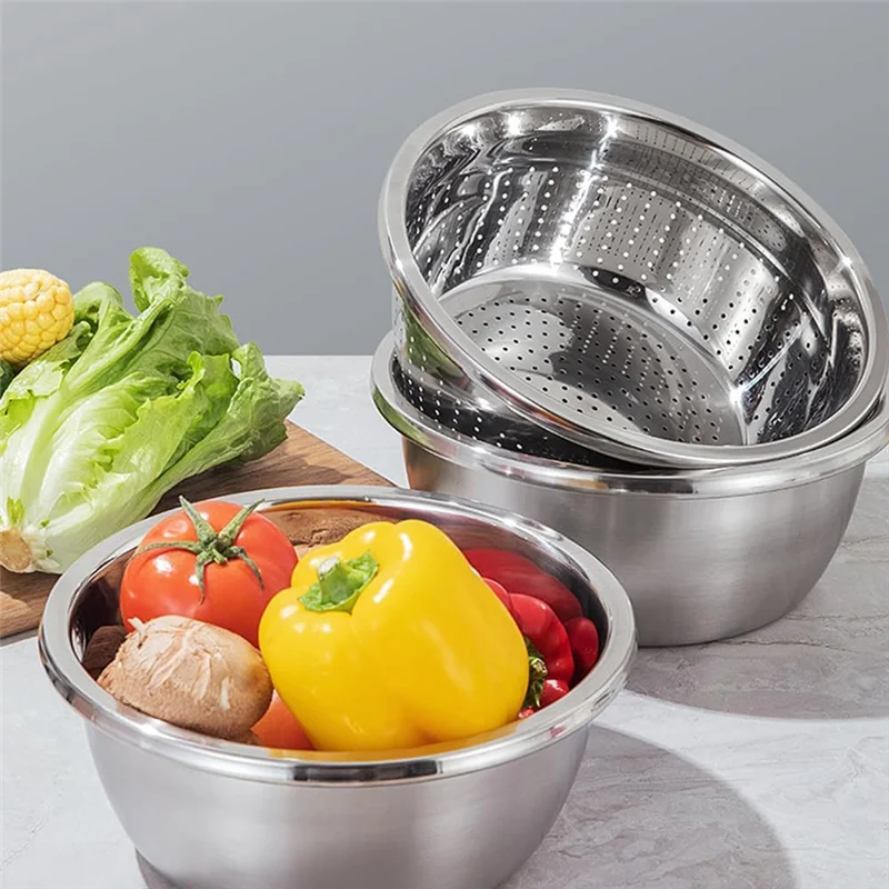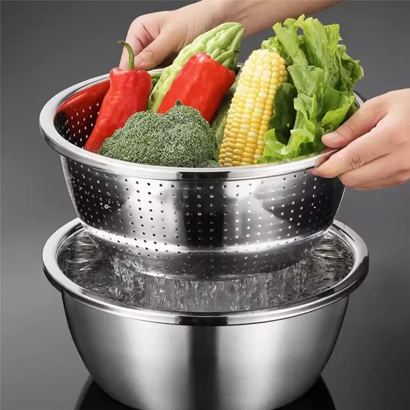 [Bassin en acier inoxydable 3 en 1] La passoire en acier inoxydable, conçue pour rendre votre cuisine plus pratique et plus agréable.Que vous soyez un chef professionnel ou un passionné de cuisine, cet outil de cuisine moderne, efficace et beau est un incontournable pour la plupart des ménages.