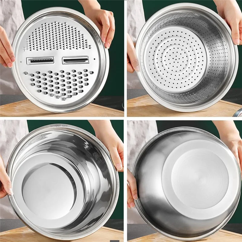[Bassin en acier inoxydable avec râpe] Bac à hacher pour déchiquetage et drainage en acier inoxydable 3 en 1 avec râpe pour une préparation efficace des aliments : vous pouvez facilement obtenir de fines tranches de concombre, des tranches épaisses de tomates, des pommes de terre râpées, du fromage râpé, des salades verts et plus encore..