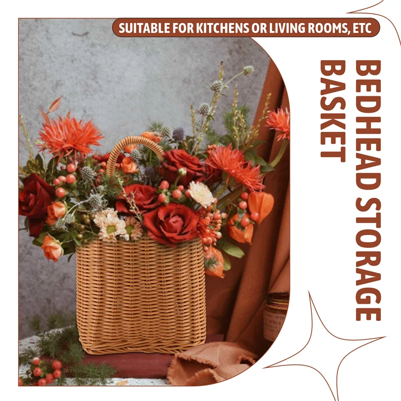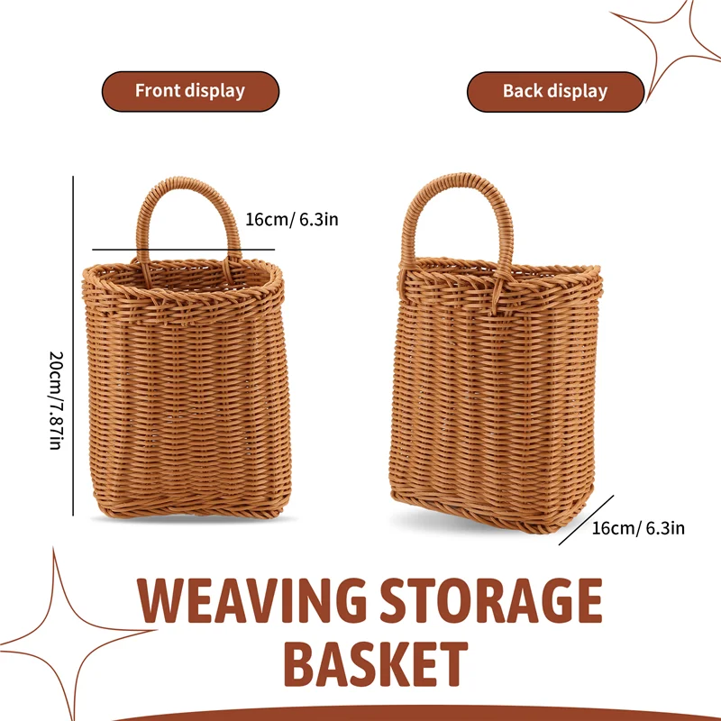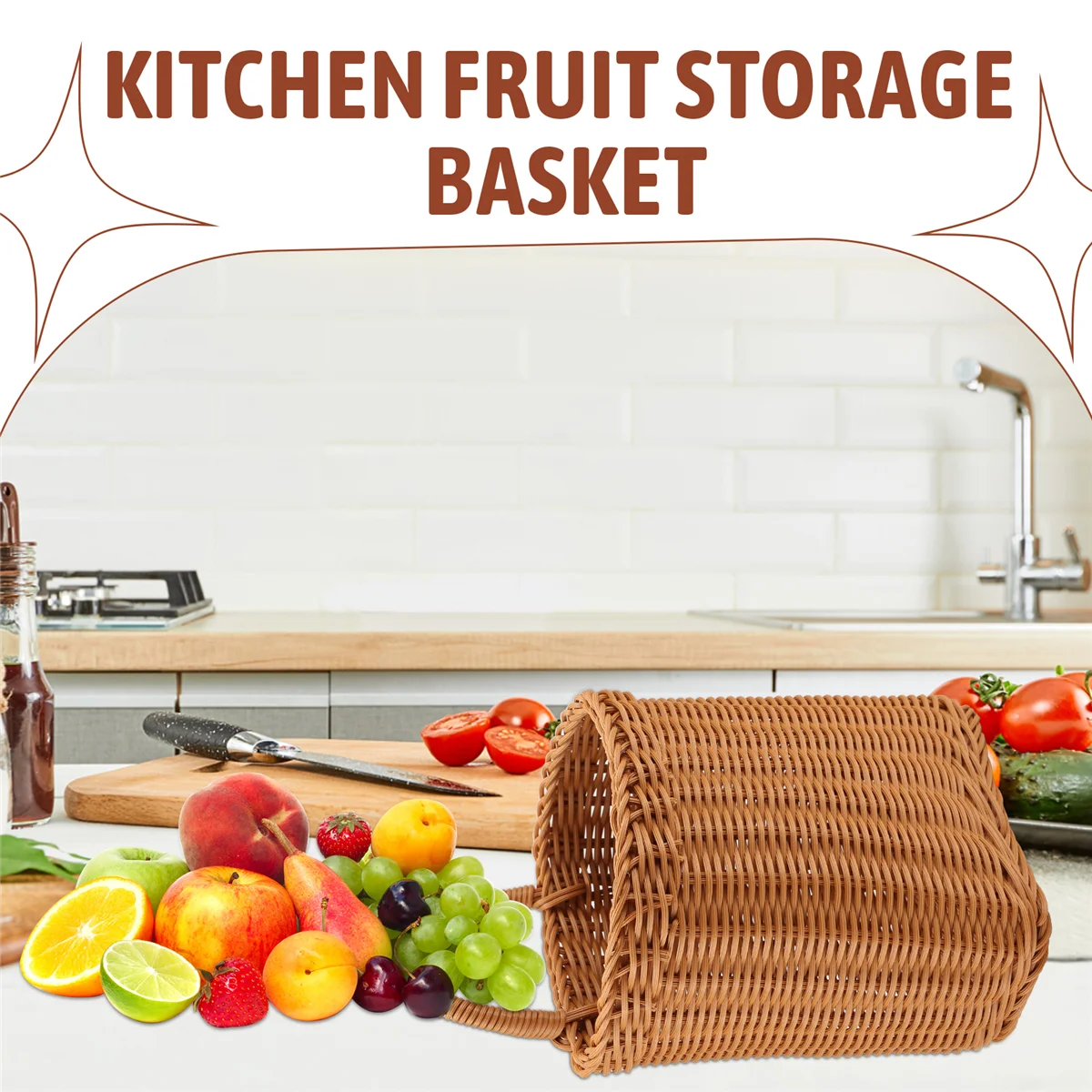 A19F-Panier de rangement de cuisine avec poignée, paniers suspendus tissés pour salon, organisateur d’articles divers de fruits, paniers tissés à la main