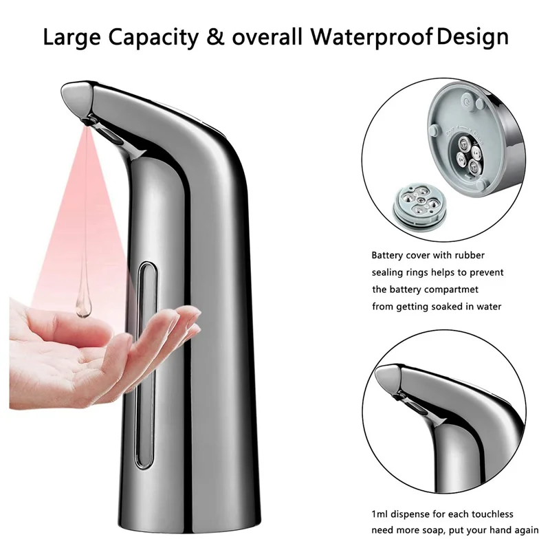 Ce distributeur de savon automatique est doté d’une technologie intégrée de mouvement infrarouge précis et de détection de capteur PIR.La pompe à haute efficacité n’a besoin que de 2 secondes pour distribuer du savon, 1 ml à chaque fois.Si vous avez besoin de plus, veuillez le tenir sous le capteur et attendre 2 secondes