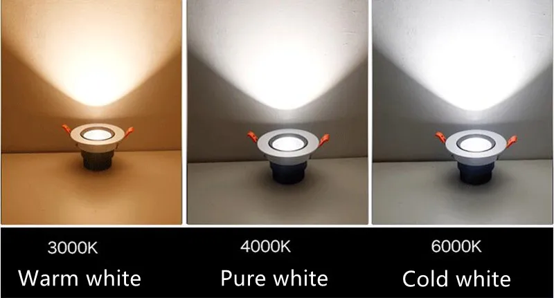 Température de couleur: blanc chaud (3000-3200K), blanc naturel (4000-4500K), blanc froid (6000-6500K).
