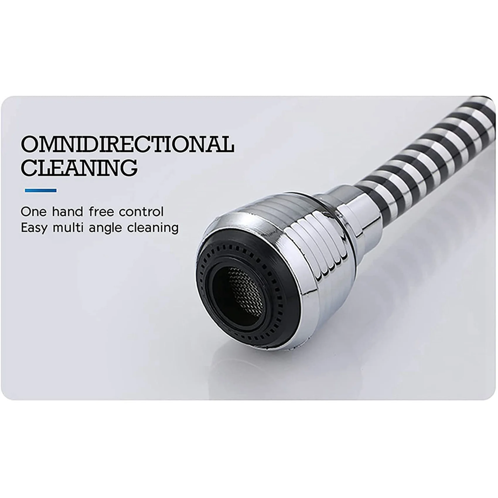 Tuyau à angle fixe : le tuyau allongé peut conserver sa position sous n’importe quel angle, vous pouvez nettoyer les assiettes, les légumes ou les fruits à deux mains.Offre plus de commodité pour le lavage et le nettoyage de la cuisine.Un angle beaucoup plus grand que sans tube d’extension peut pivoter à 360 degrés et la rotation est plus facile et sans effort.