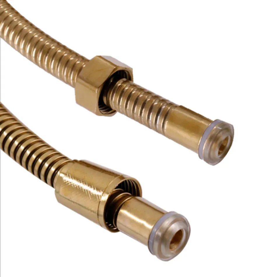 1.5 m Tuyau De Douche Tuyau En Acier Inoxydable Noir Rose Or Cuivre Bronze Tressé Flexible Salle De Bains Robinet De Douche Tubes EPDM G2/1 Caractéristiques: Longueur: 59 Pouces/1.5 mètres Matériel: acier inoxydable (la couleur bronze est le cuivre) Matériau intérieur: Écrou en laiton EPDM et connecteur d’insertion en laiton Taille: 1/2 "NPF Résistance à la température: 60 ° C Pression d’éclatement: Liste de paquet 6MPa: 1 * tuyau de douche de longueur standard, 59 pouces ou 1.5 mètres. Tube extérieur en acier inoxydable à double verrouillage de qualité, assurant la durabilité et anti-corrosion. Flexible et ne se plie pas Les connecteurs en laiton massif de taille standard s’adaptent à la plupart des appareils de douche avec ses extrémités de 1/2 ", installation facile Ce tuyau de douche est fabriqué en acier inoxydable de haute qualité et a passé notre test de pulvérisation de sel pour assurer une haute performance et une résistance à la corrosion.