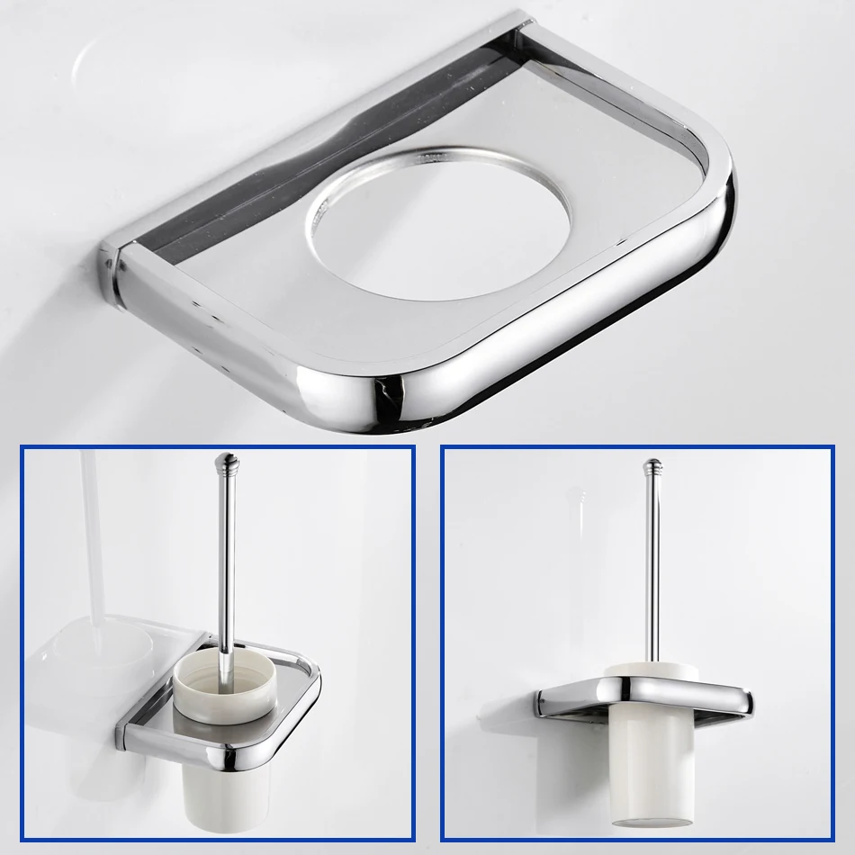 Accessoires de salle de bains chromés, ensemble de quincaillerie, étagère murale en laiton, porte-brosse WC, panier en rouleau de papier, anneau porte-serviettes, porte-savon