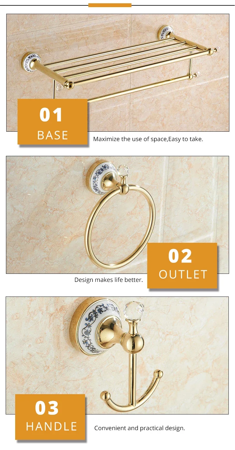 Accessoires de salle de bains, porte-papier mural, toilettes, anneau de serviette doré, boîte à savon, porte-gobelet, ensemble de matériel de salle de bains en céramique de luxe