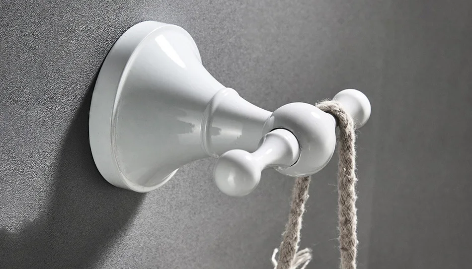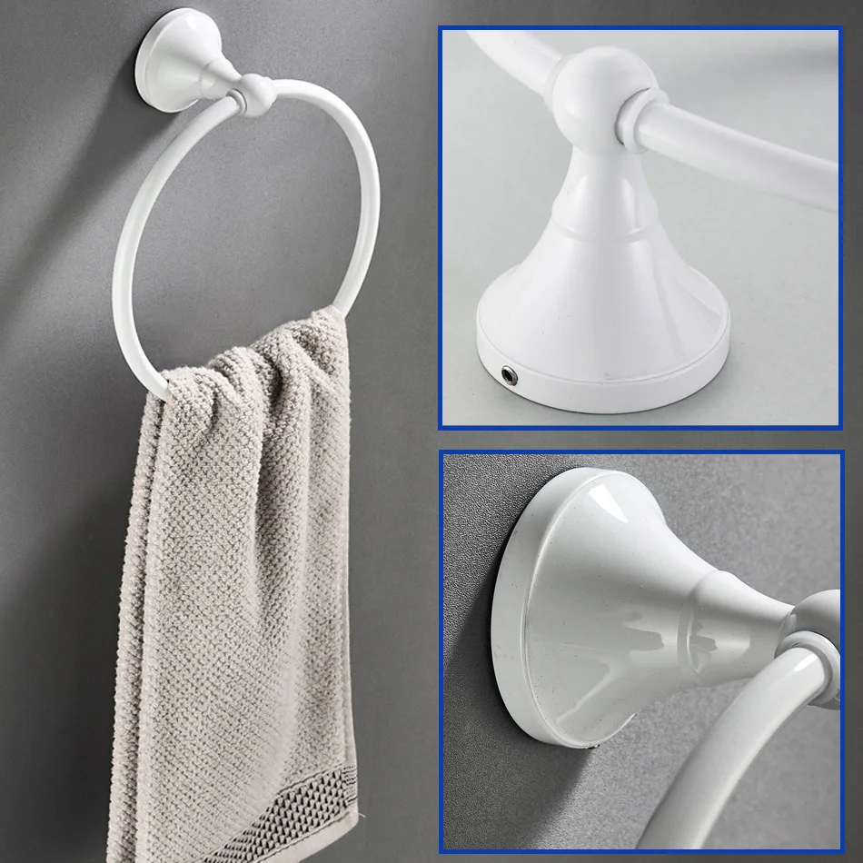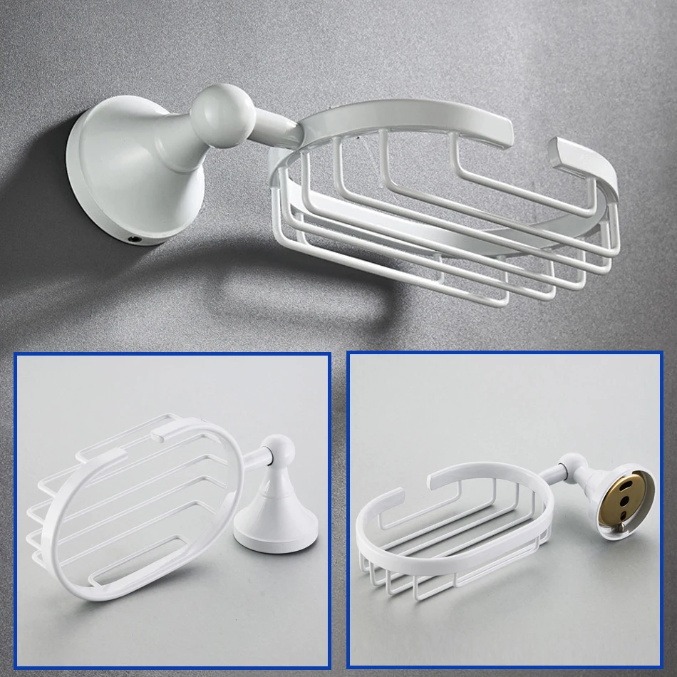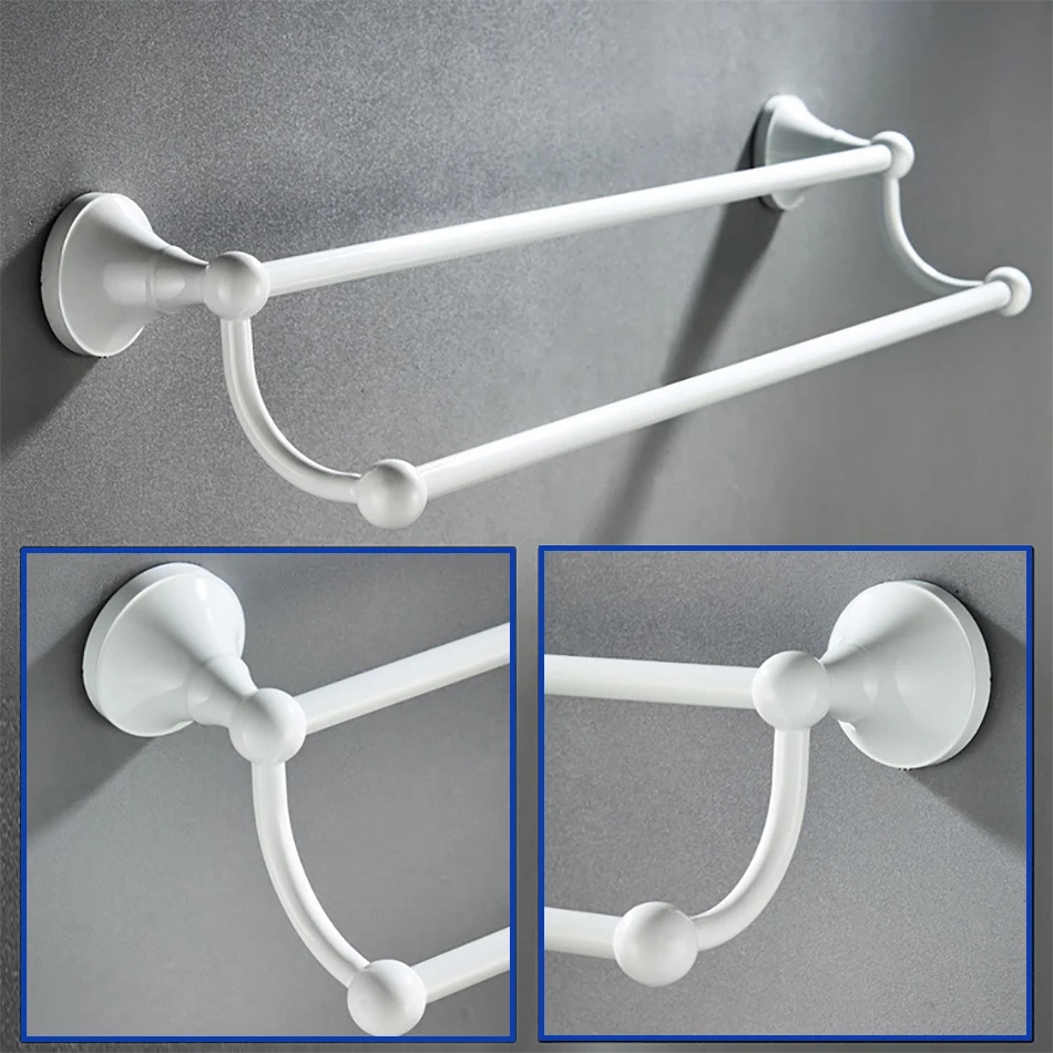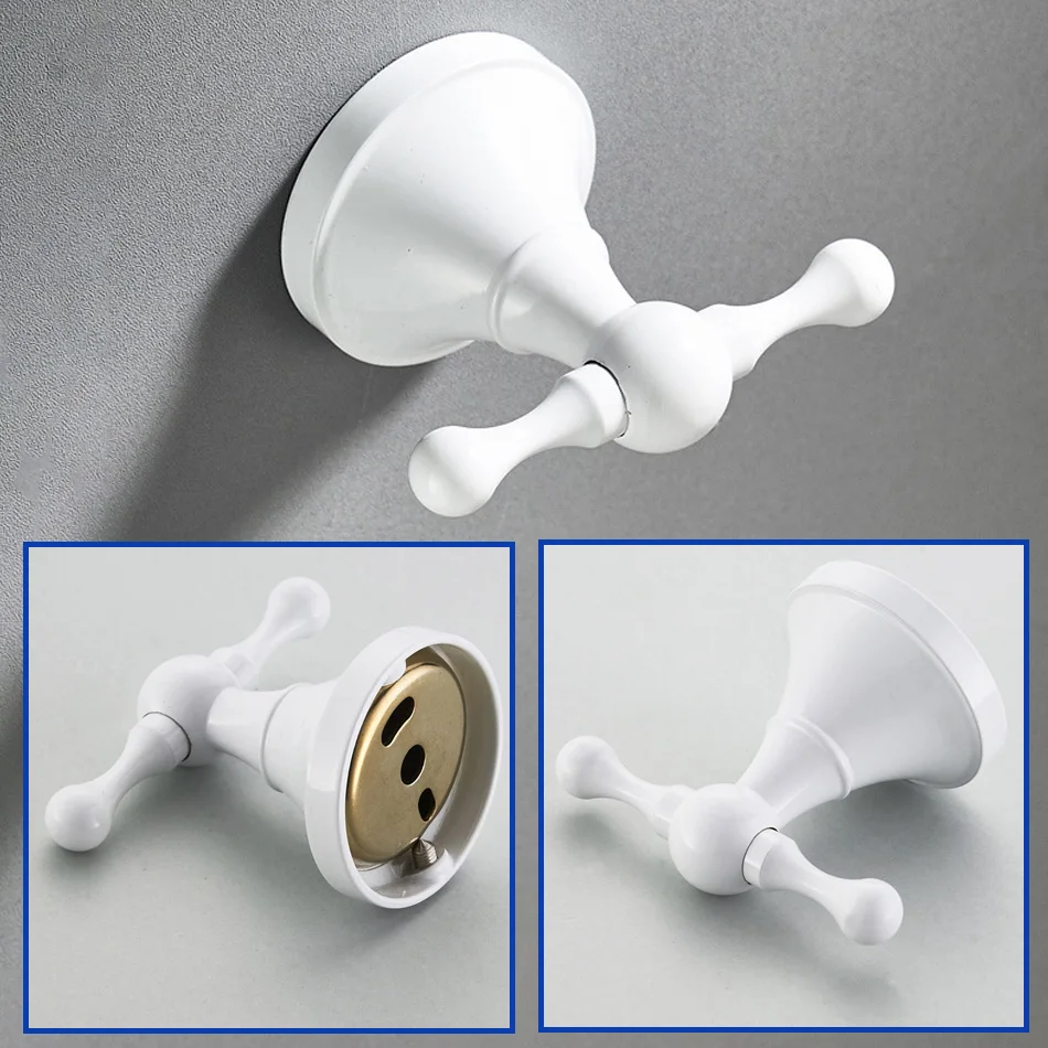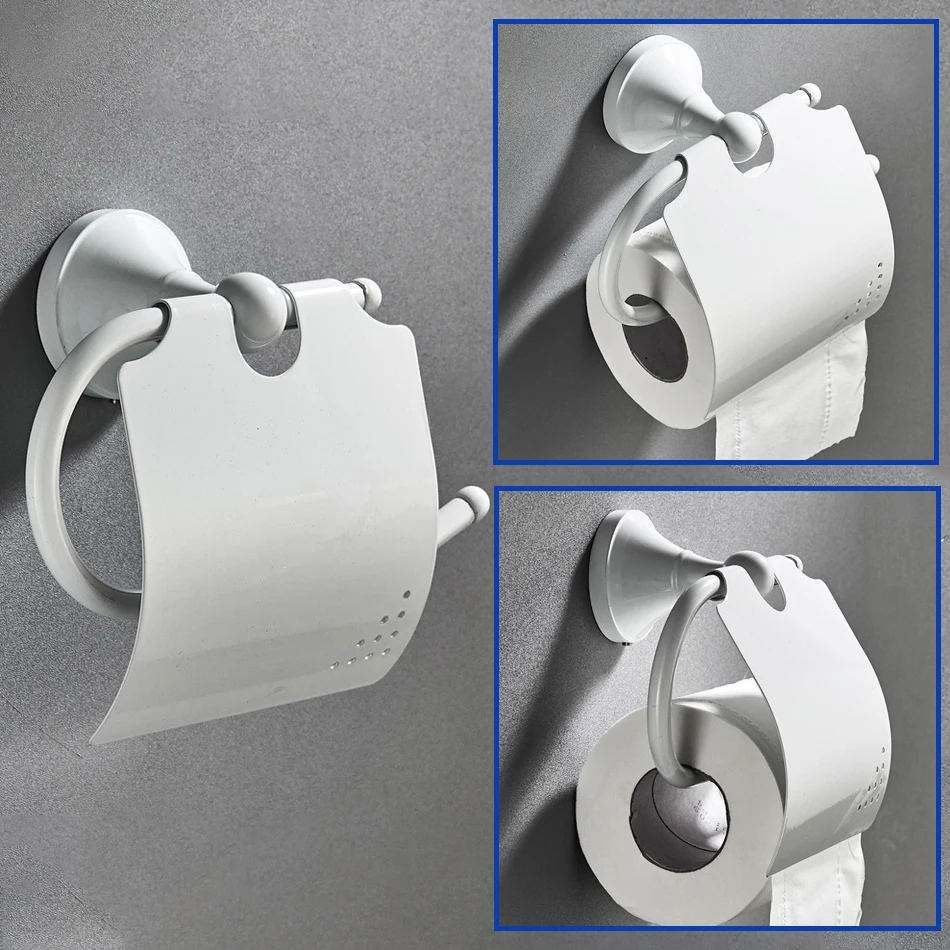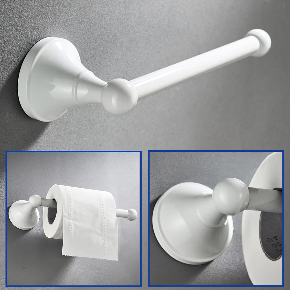 Accessoires de quincaillerie de salle de bain blanc en laiton Double porte-serviettes de bain brosse de toilette ensemble d’étagère WC porte-rouleau de papier douche porte-savon