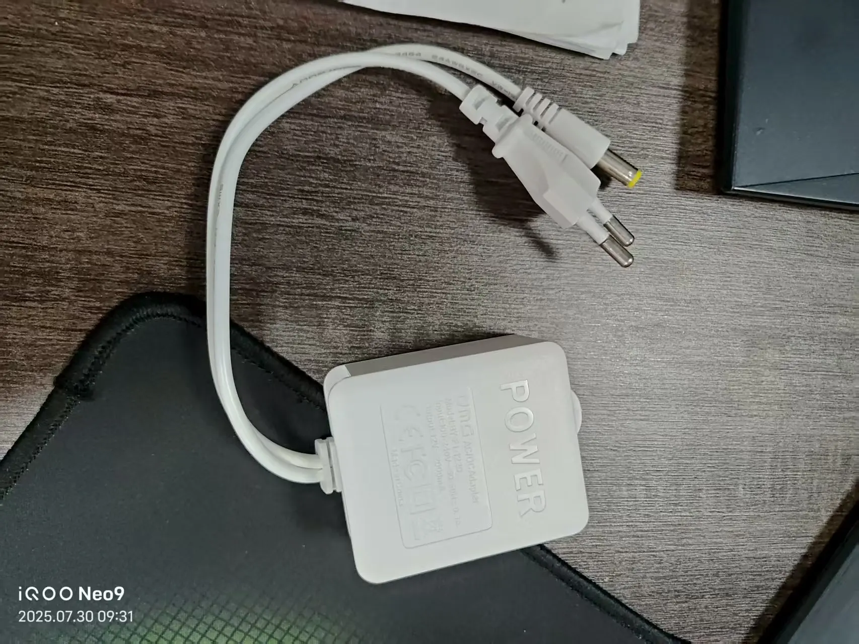 2.L’adaptateur secteur est dans le bon sens vers le haut.