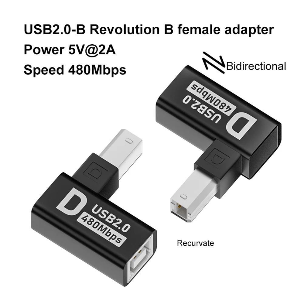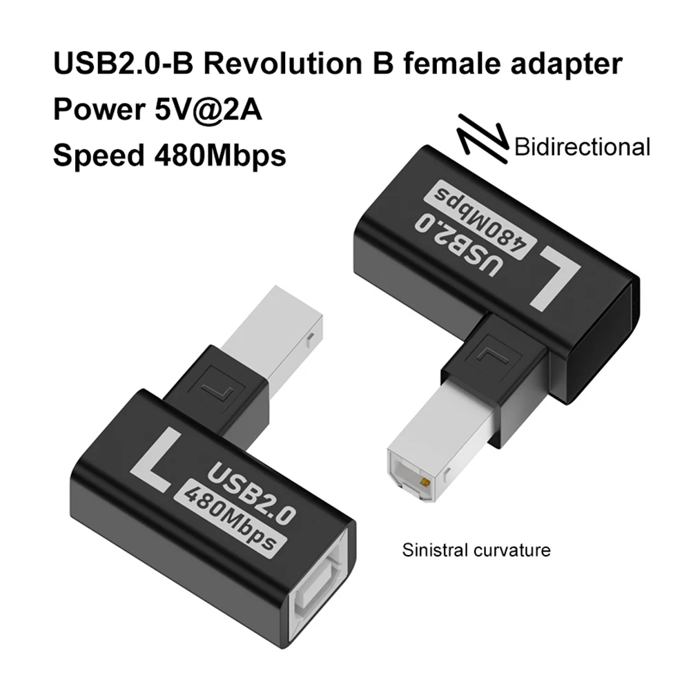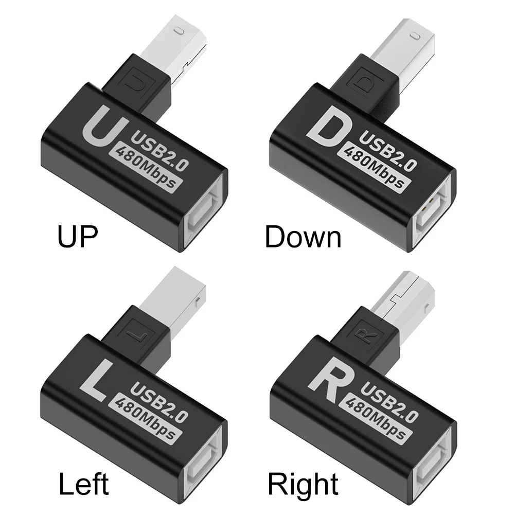 Adaptateur d’impression USB 2.0 Type B, extension de prise à Angle droit gauche mâle à femelle, adaptateur d’imprimante USB B à 90 degrés USB 2.0 type-b, adaptateur d’extension de données pour imprimante et Scanner HDD