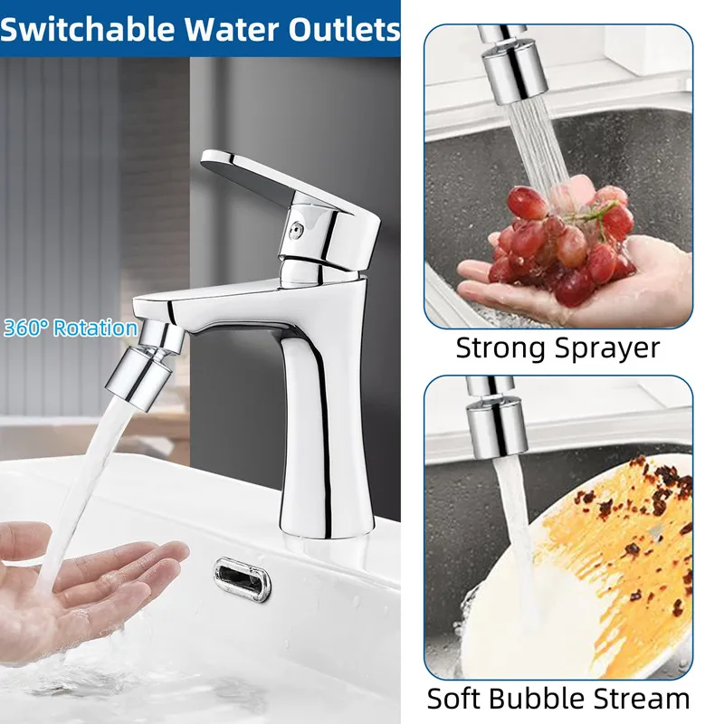 ❤Conception du débit d’eau à 2 modes: cet aérateur de robinet a un jet de bulles souples et un jet puissant. L’extension de robinet à double fonction permet au débit d’eau d’atteindre une grande portée de l’évier et vous rend plus pratique à laver.