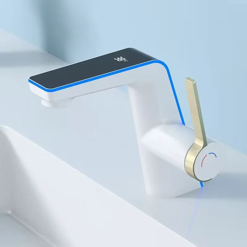 Affichage numérique de la température du bassin, lumière LED, 2 modes, pulvérisateur, eau chaude et froide, évier, centre commercial, robinet de lavage, trou unique pour HOHO.