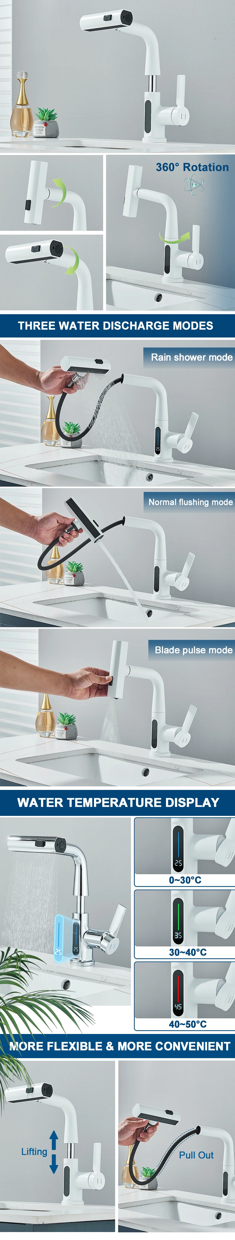 • Affichage numérique de la température :Ce robinet de lavabo offre un affichage numérique de la température, permettant une utilisation plus pratique et sûre pour vos baños.