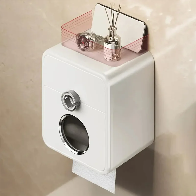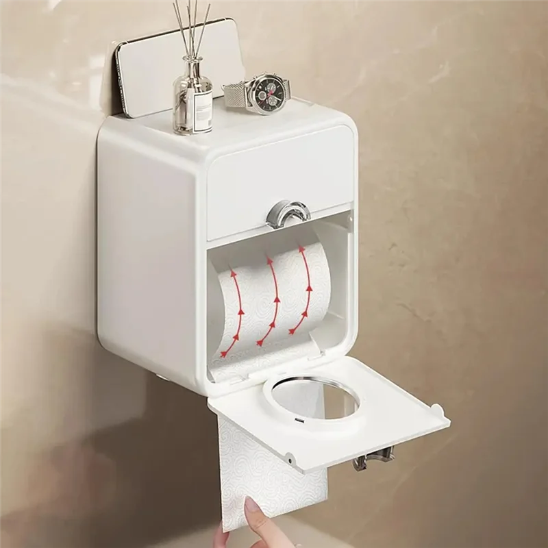 Gardez votre salle de bain organisée avec notre porte-papier toilette mural simple et compact.Doté de petits tiroirs et d’un couvercle étanche scellé, il est parfait pour les environnements humides.