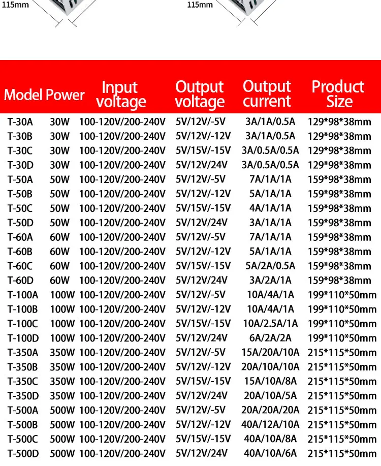- Numéro de Modèle: T-30W,T-50W,T-60W,T-100W,T-350W,T-500W