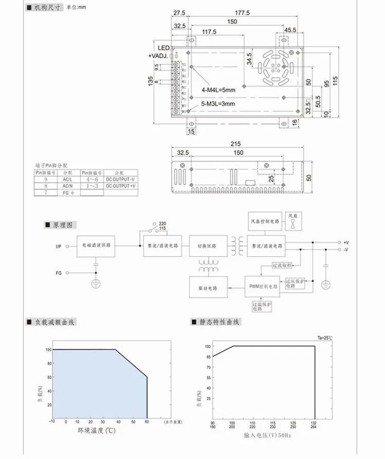 Attention particulière: lors de l’utilisation de charges inductives telles que des moteurs et des ventilateurs, veuillez prêter attention au paramètre de courant de démarrage du moteur. Ce paramètre ne doit pas être supérieur au courant de fonctionnement de l’alimentation, sinon il pourrait endommager l’alimentation. Par conséquent, une alimentation à courant plus élevé doit être sélectionnée, ou un circuit de protection de démarrage progressif doit être équipé pour que le moteur absorbe le courant d’impact.