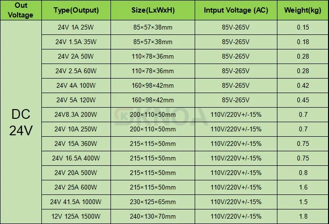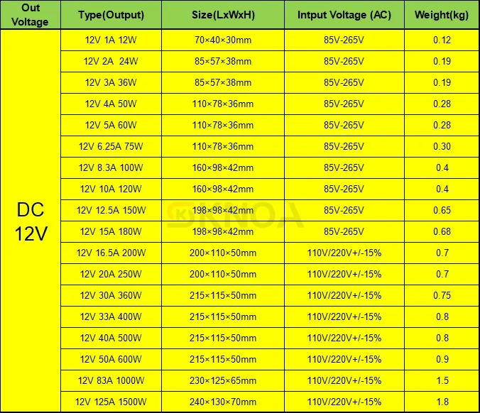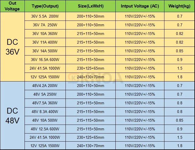 Tension de sortie : DC 5V/DC12V/DC24V /DC36V/48V