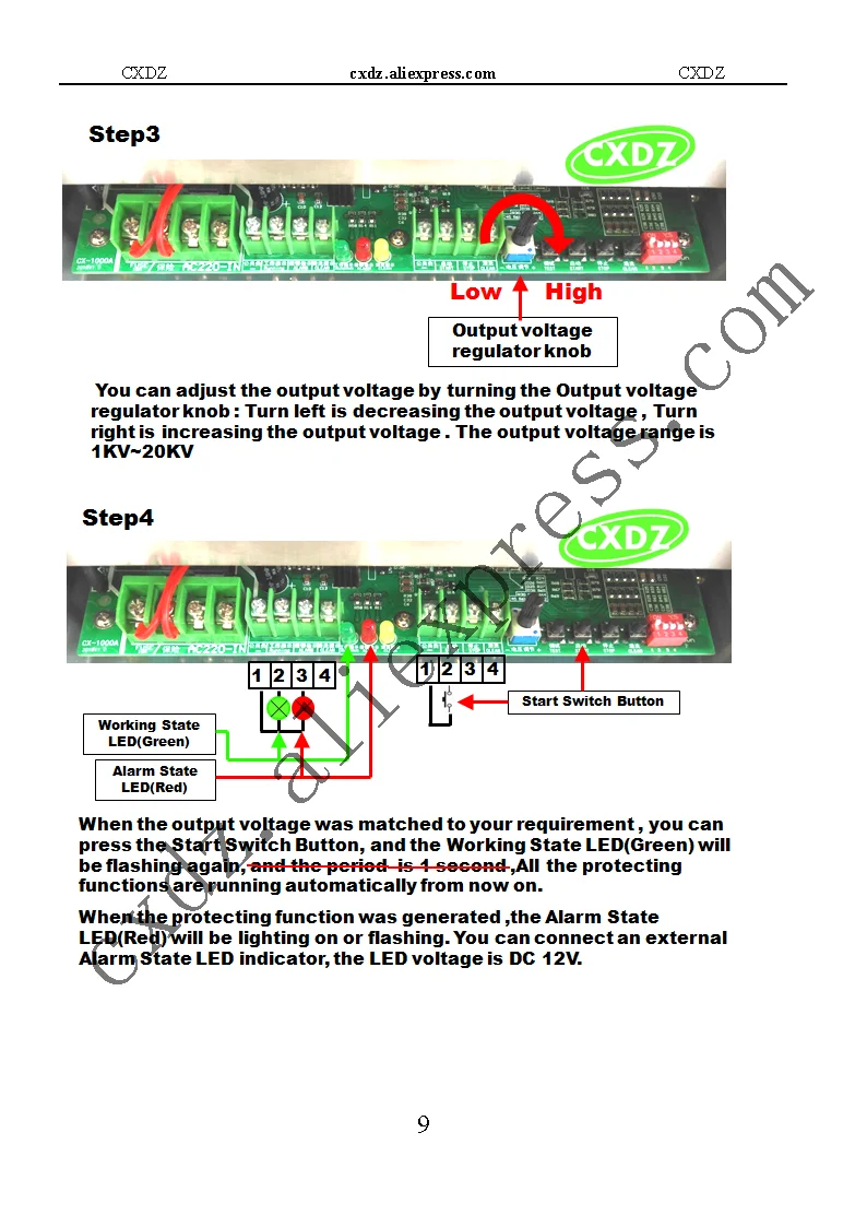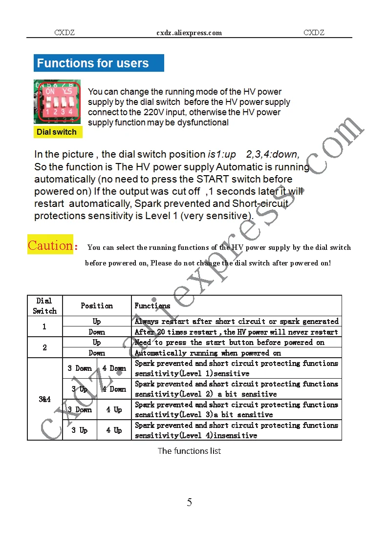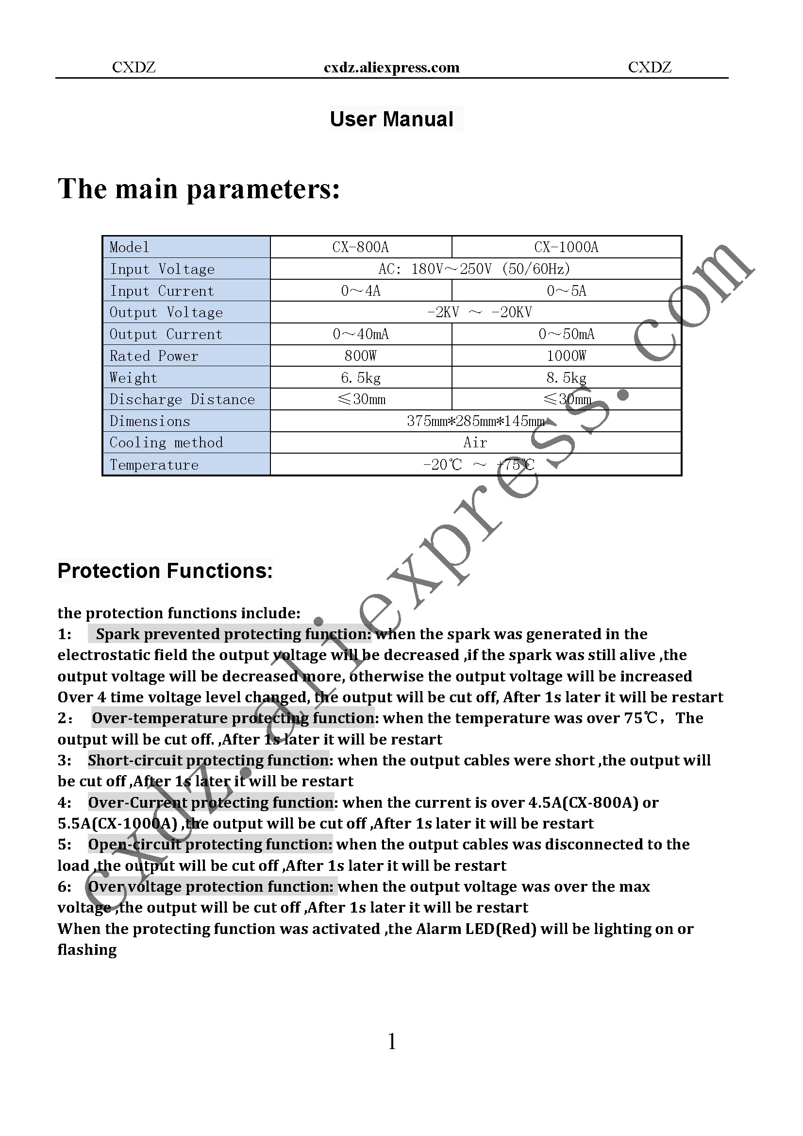 - Protection functions: spark prevented, short circuit protecting, over temperature protecting,over voltage protecting