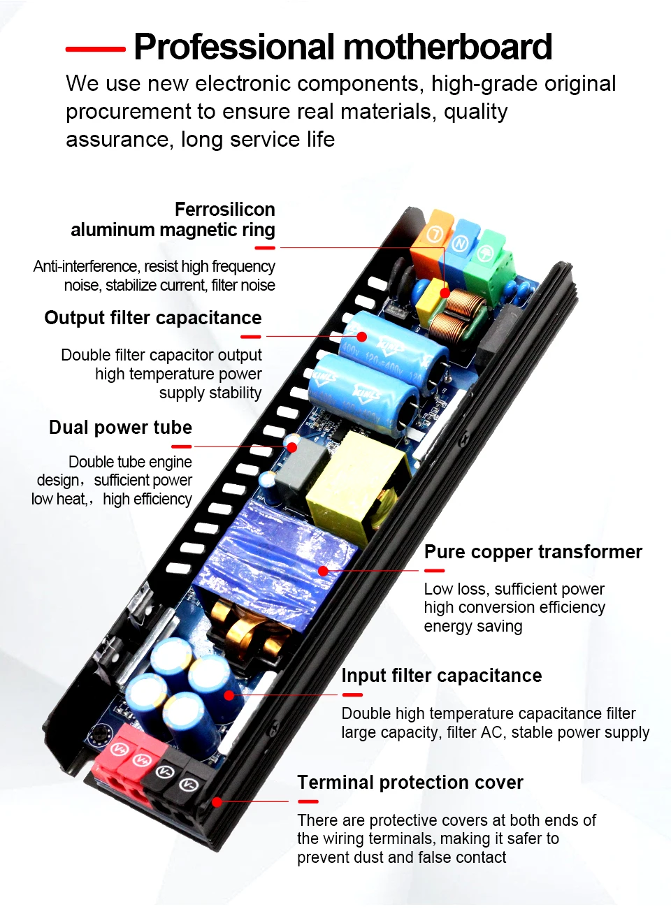 • Tension de sortie stable et précise (DC 12V ou 24V ± 3%-5%)