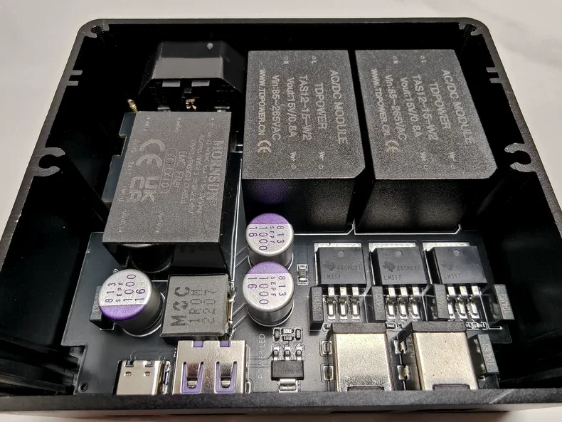 Adoption d’une conception de module de transformateur isolé, combinée avec une puce LDO de régulateur de tension linéaire, complètement l’isolée de l’interférence de l’alimentation secteur. Cette alimentation a la fois la grande dynamique d’une alimentation à découpage et une faible ondulation d’une alimentation linéaire, combinant une alimentation dynamique et statique, qui est très parfaite! Convient à utiliser avec la décodage R2R dans les magasins, réduisant le bruit d’arrière-plan, augmenter la densité sonore et rendant le plus sombre.