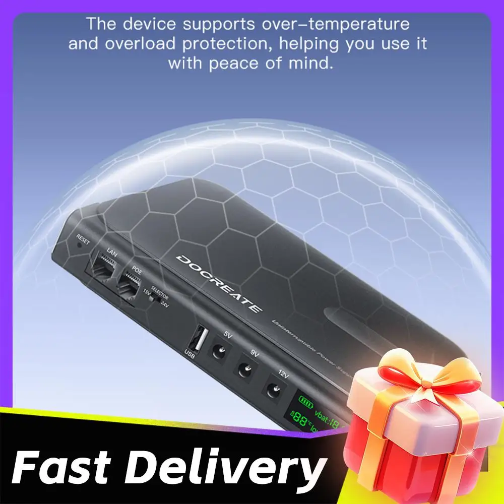 • Portable Power Supply: Multi-Voltage Mini DC UPS Battery Backup