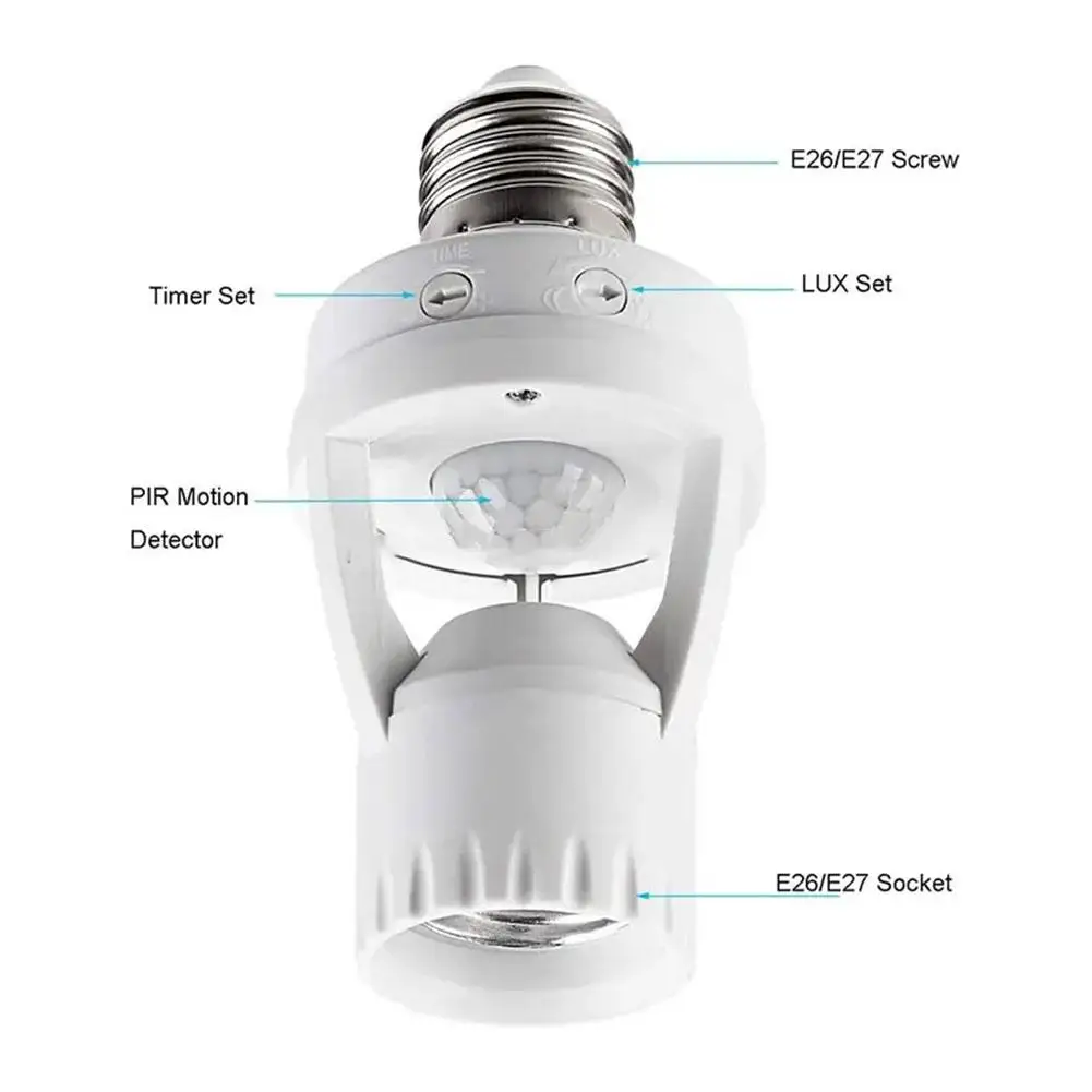 Vous obtenirez 1 morceau de support de lampe à capteur humain infrarouge E27, qui peut convertir des ampoules ordinaires dans des lampes à capteur infrarouge.