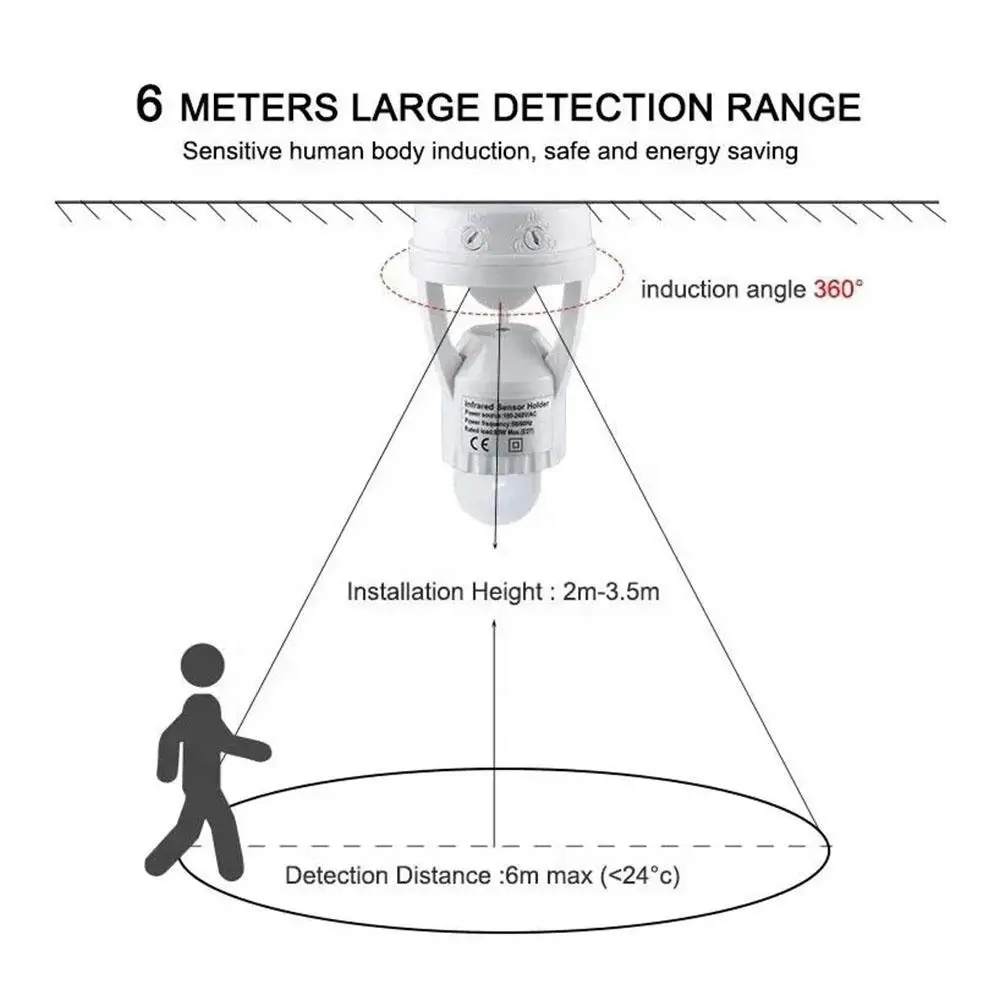 Vous recevrez 1 morceau de support de lampe à capteur humain infrarouge E27, qui peut convertir des ampoules ordinaires en lampes à capteur infrarouge.