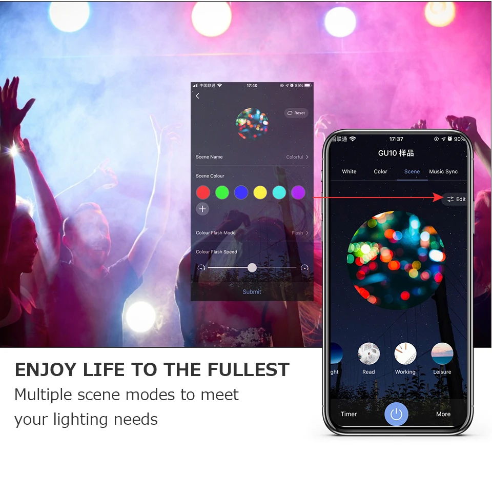 1.Le appareil est directement connecté au WiFi et à l’application de téléphone portable peut contrôler à distance l’ampoule à la maison à tout moment.