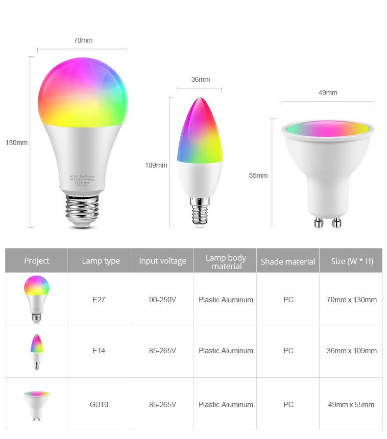 Réglage de l’atmosphère : l’éclairage parfait peut être fixé dans diverses occasions.Réglez la luminosité du blanc chaud/blanc froid (2700K ~ 6500K) à une variété de couleurs rouge, vert et bleu.Par exemple, allumer la ampoule LED intelligente avant d’arrivée à la maison, dimmer la lumière intelligente et la fête avec vos amis.