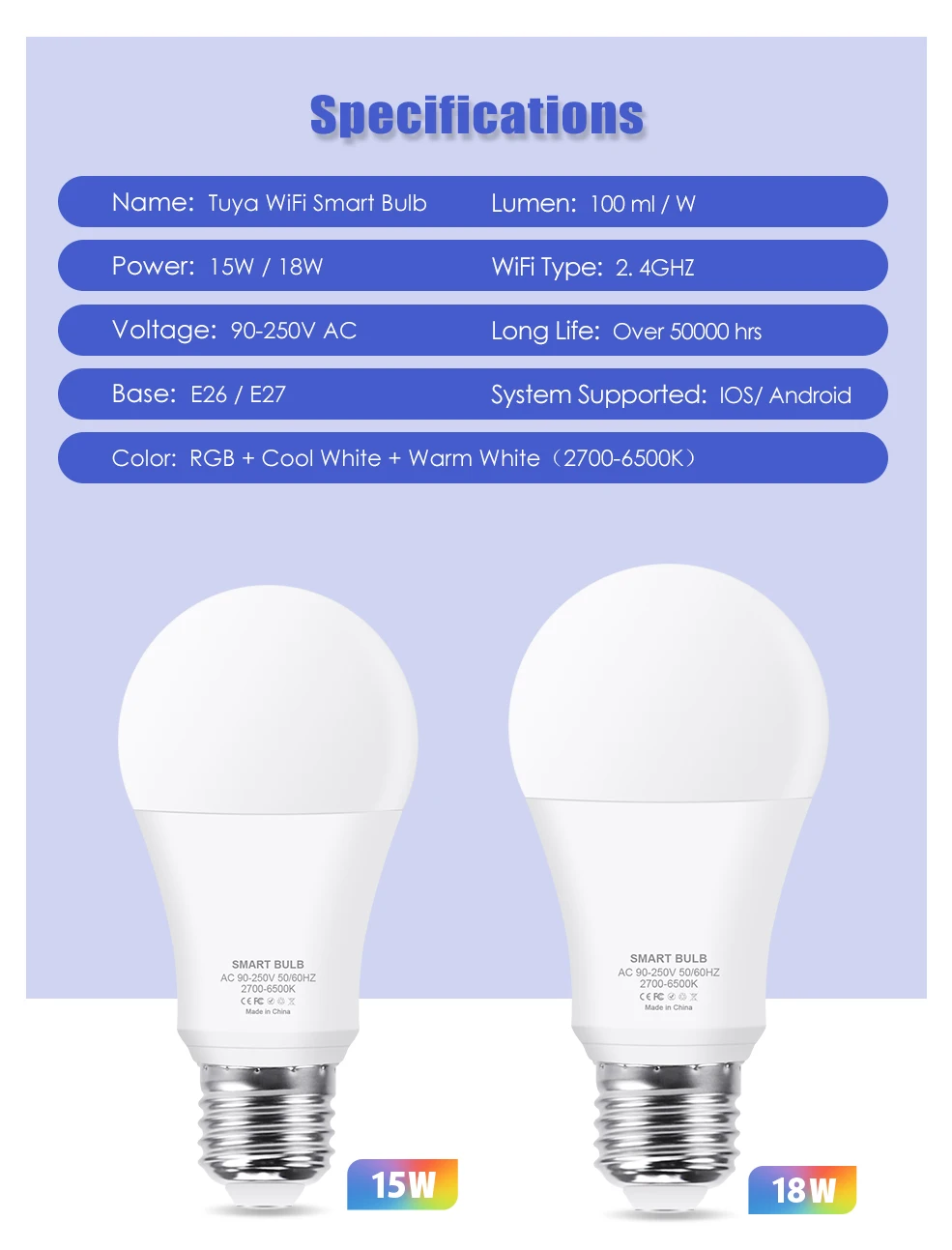 Type : Ampoule LED intelligente Tuya WiFi