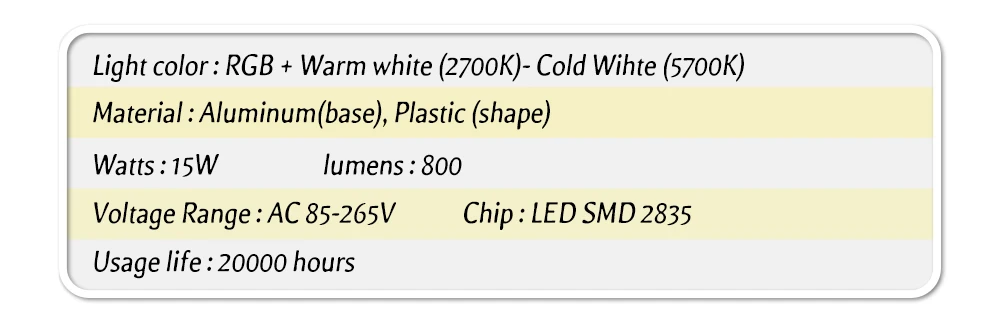 - Color: RGBCW