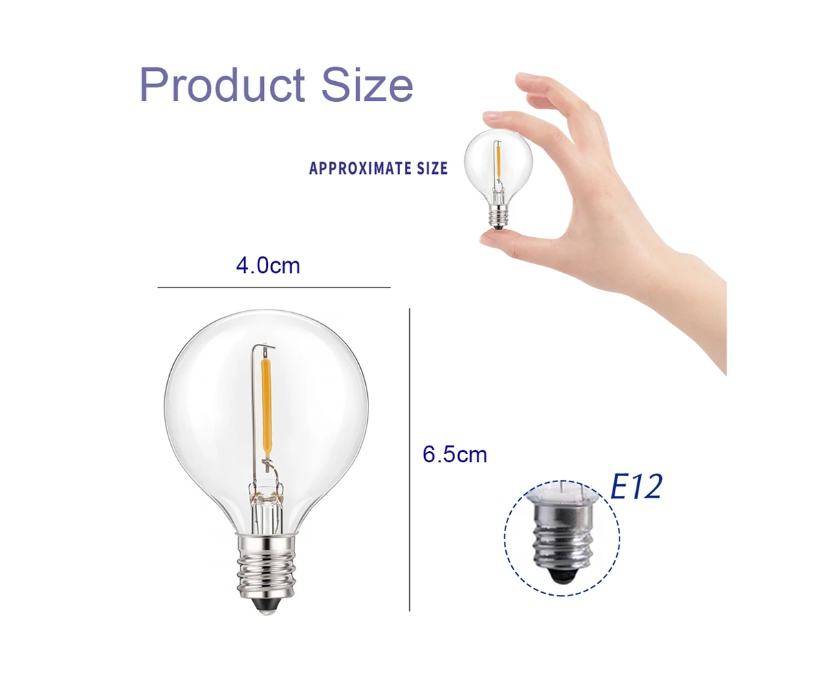 La base E12 s’adapte à la plupart des guirlandes lumineuses, lustres, lampes de table et lampes de vanité G40.