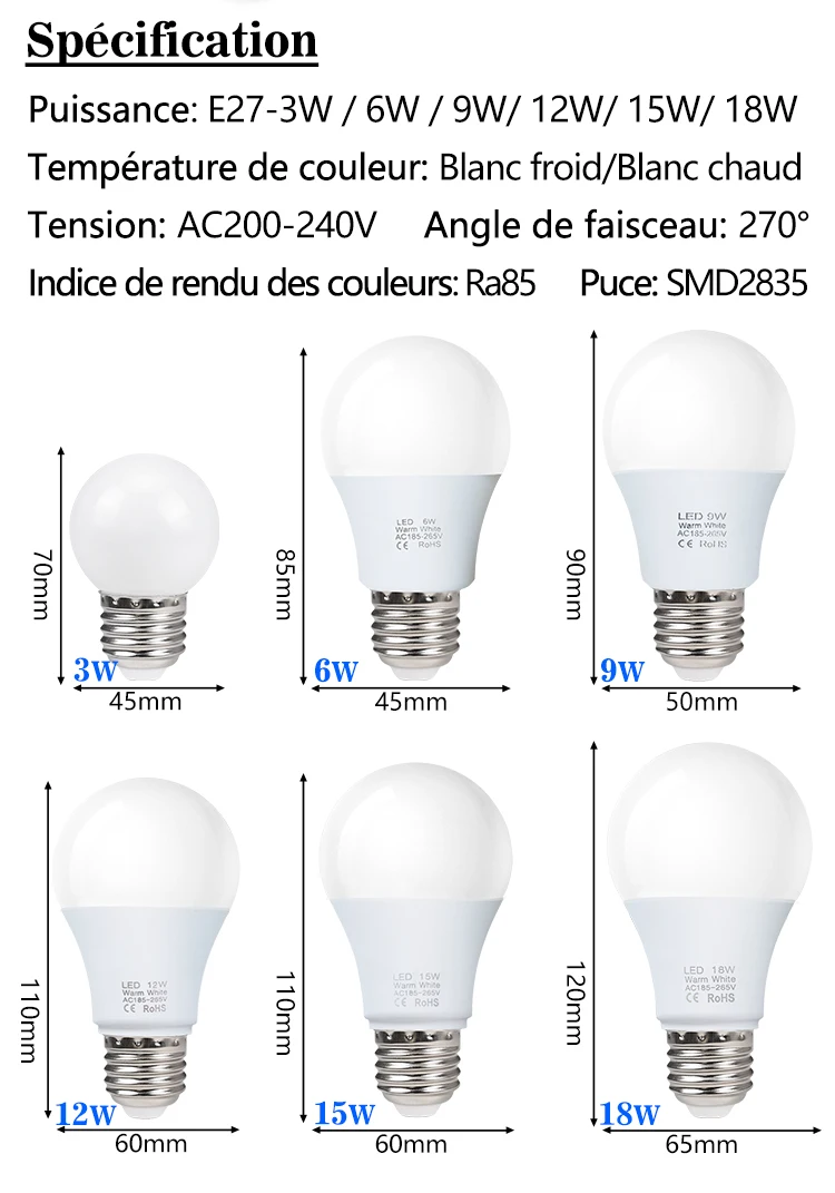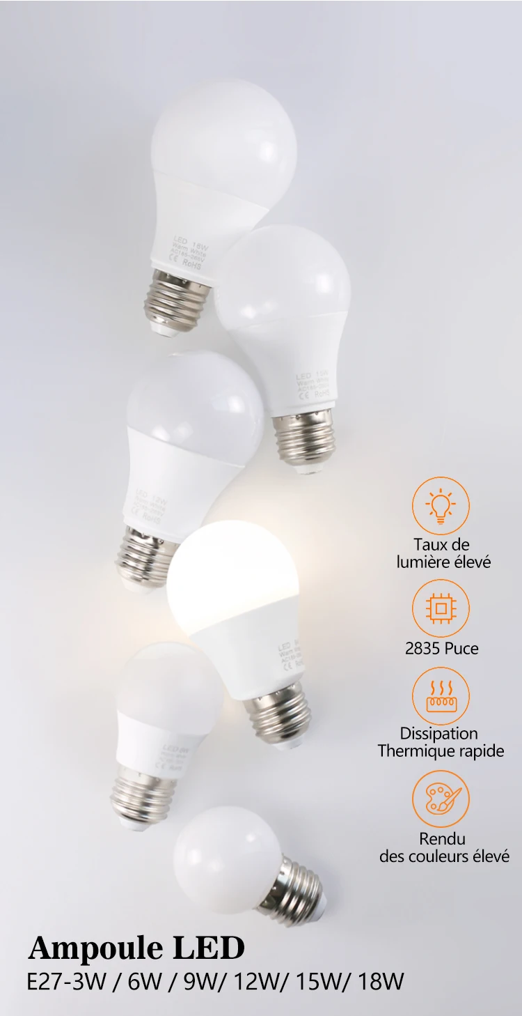Soyez le premier à laisser votre avis sur “Ampoule LED AC 220V-240V, Smart IC, haute luminosité, lampe Bombilla, budgétaire, 3W, 6W, 9W, 12W, 15W, 18W”