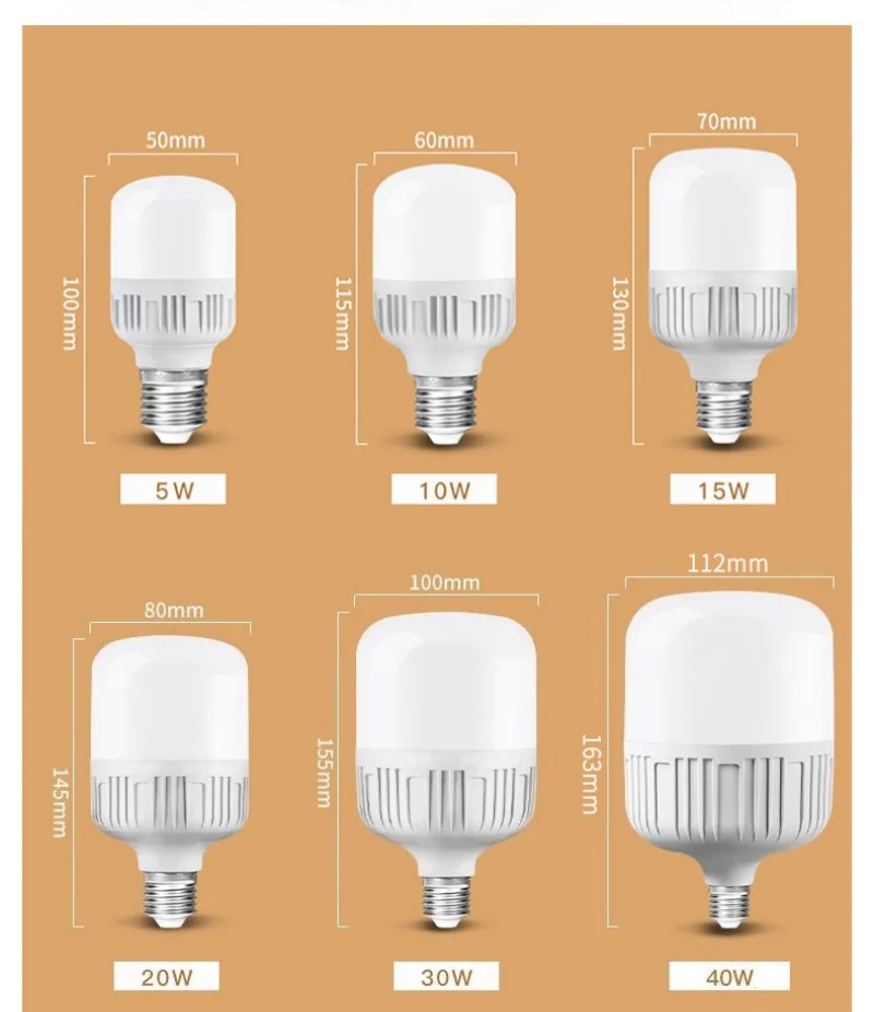 Puissance: E27/B22-5W/ 10W/ 15W/ 20W/ 30W/ 40W/ 50W/ 60W/ 80W