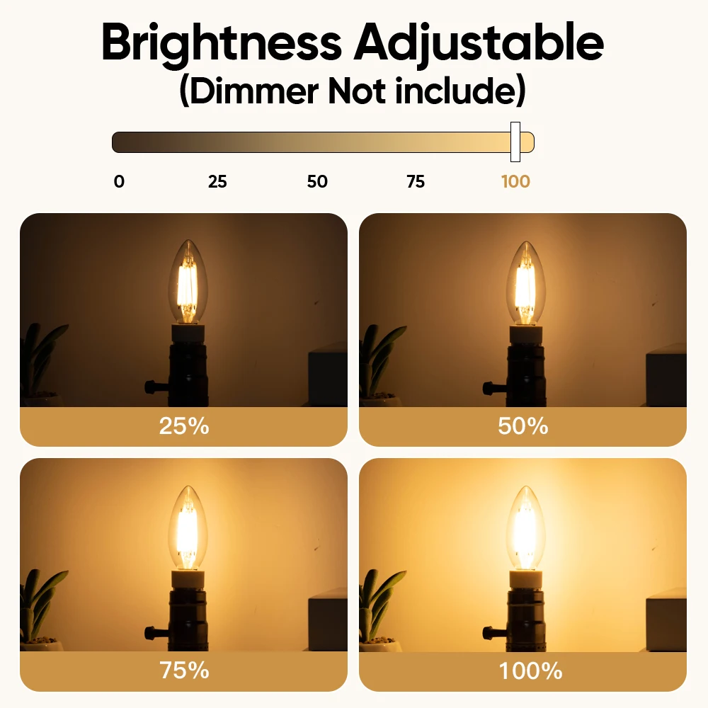 Gradation en douceur : sans scintillement, sans bourdonnement, sans stroboscope ni bourdonnement, ampoule candélabre e12/e14 testée pour fonctionner avec la plupart des variateurs LED pour avoir une gradation en douceur allant de 10 % à 100 %.