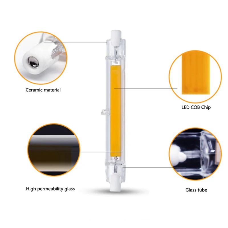 Nom du produit : lampe LED COB R7S en tube de verre