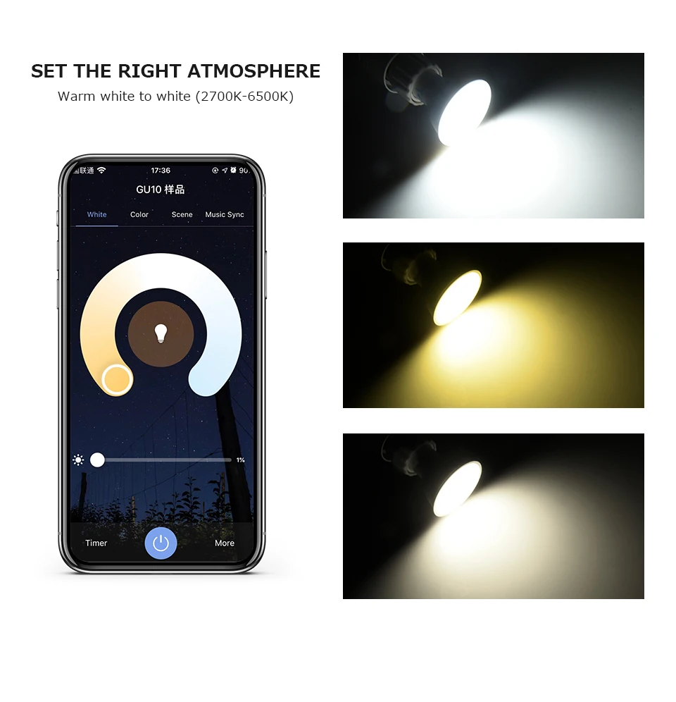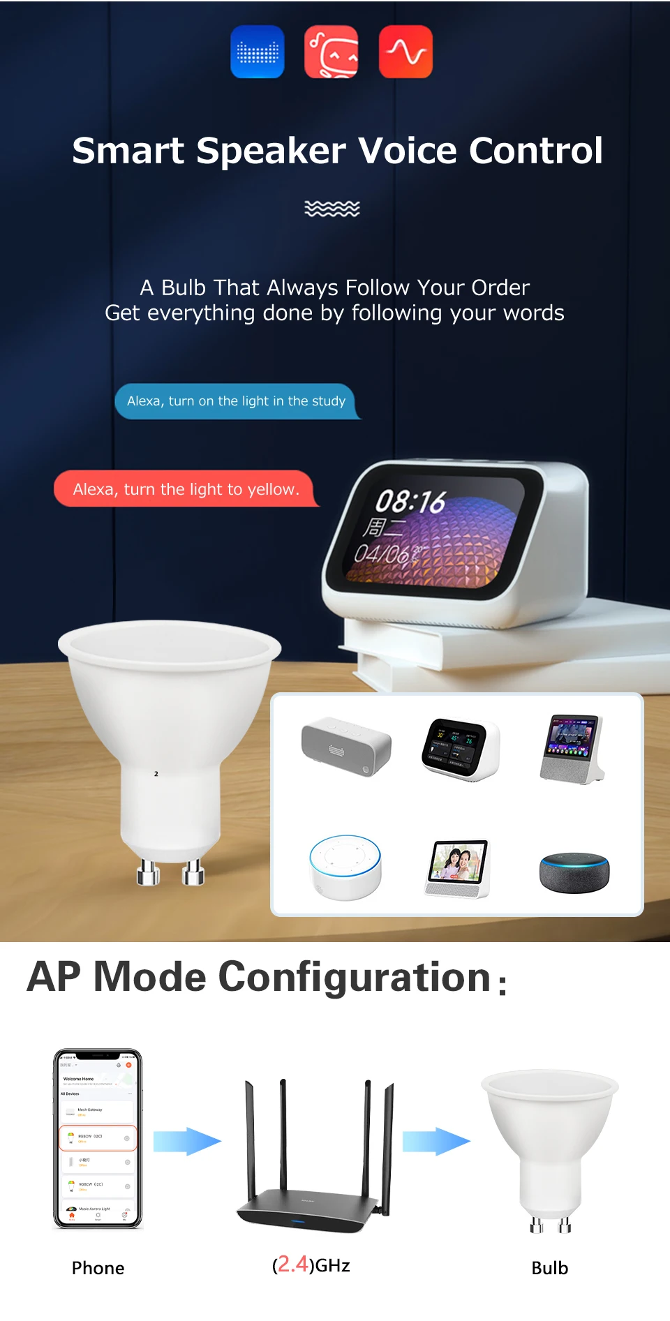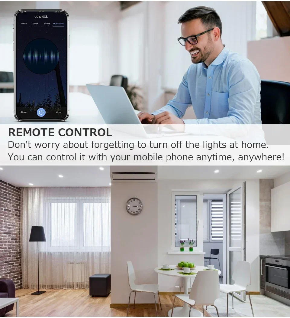 1.Le appareil est directement connecté au WiFi et à l’application de téléphone portable peut contrôler à distance l’ampoule à la maison à tout moment.