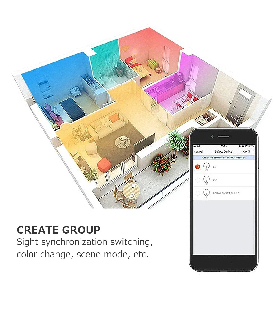 5.Une application contrôle plusieurs ampoules, prend en charge le contrôle de groupe et prend en charge le contrôle individuel.