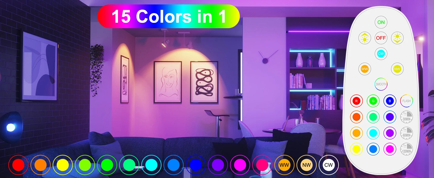 Télécommande intelligente, opération pratique : équipée d’une télécommande infrarouge, permet de la commutation à distance des modes de source lumineuse, réglage de la luminosité et de la couleur sans besoin d’obtenir, créez facilement un environnement lumineux personnalisé.