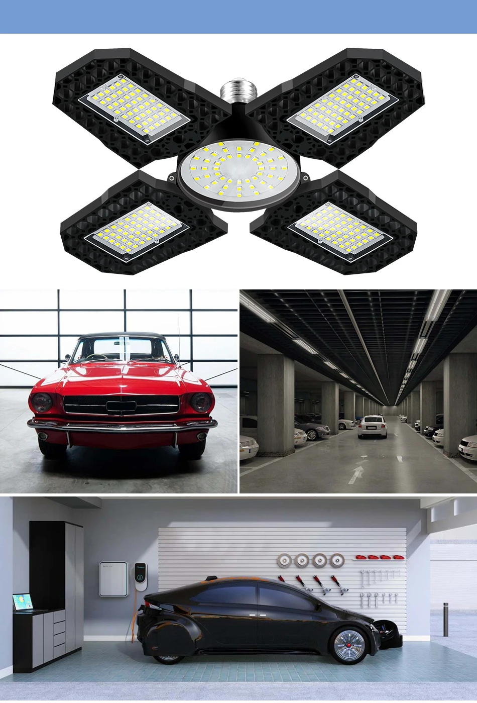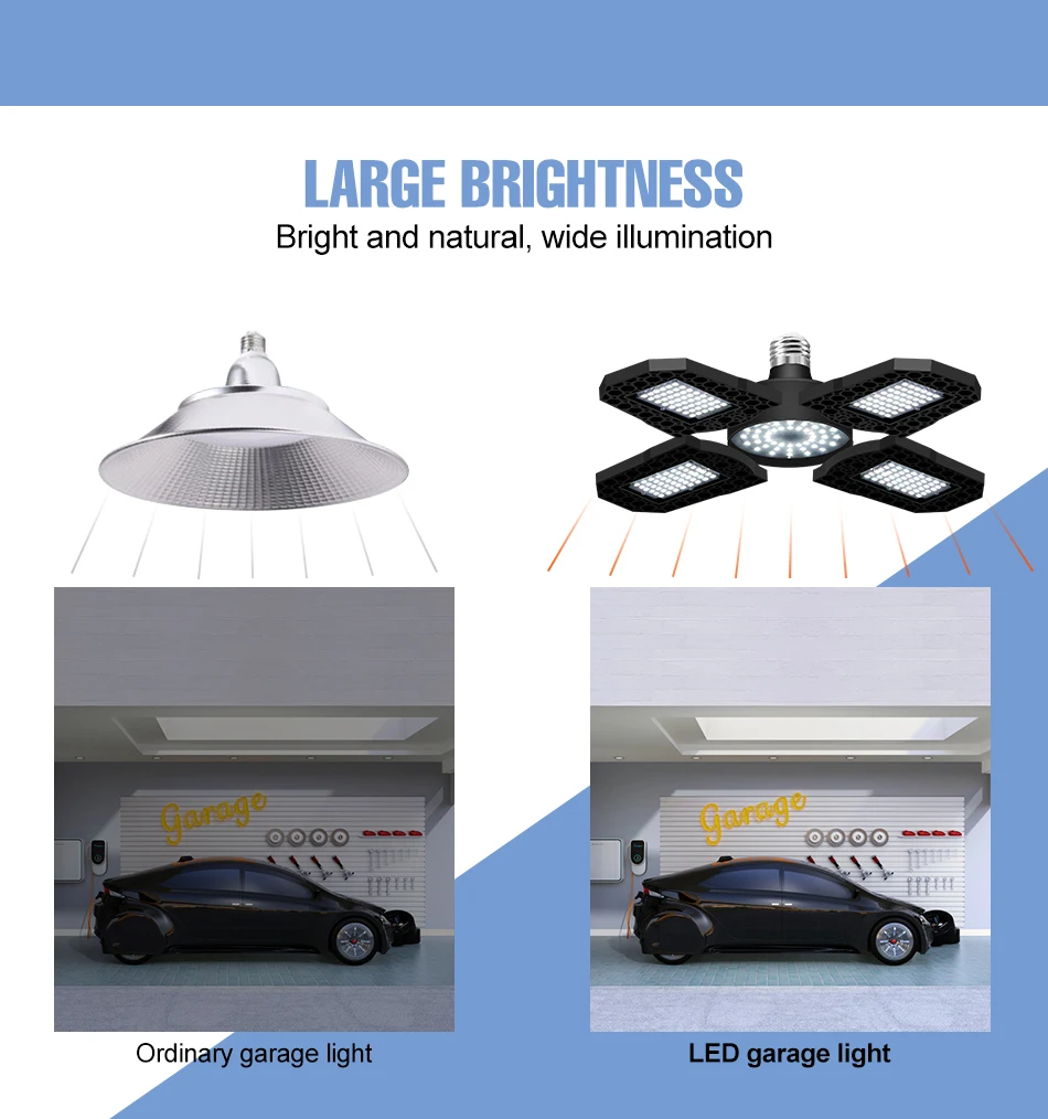 Notre lumière déformable de garage de LED peut être employée d’intérieur, garage, stationnement, place, stade, sous-sol, entrepôt, usine, supermarché, gymnase,